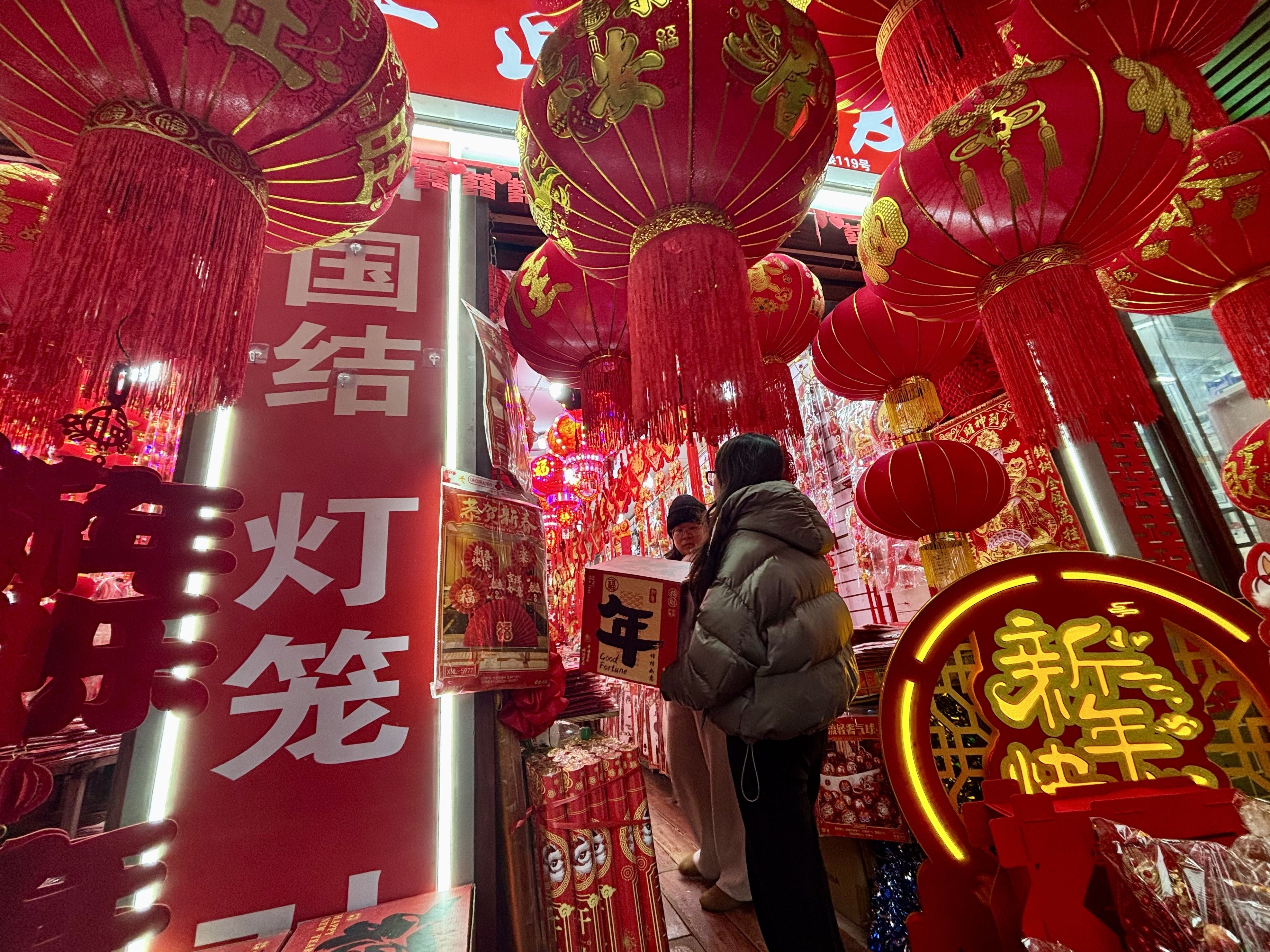 年关将至,走进汉正街,喜庆而繁忙的氛围扑面而来。百余家销售过年饰品的商铺门口都挂着红灯笼,货架上的对联和“马”元素摆件让人目不暇接。市民们正热情选购着年画、挂历、中国结、红包、电子鞭炮,琳琅满目的节庆商品汇成一片红色海洋。
