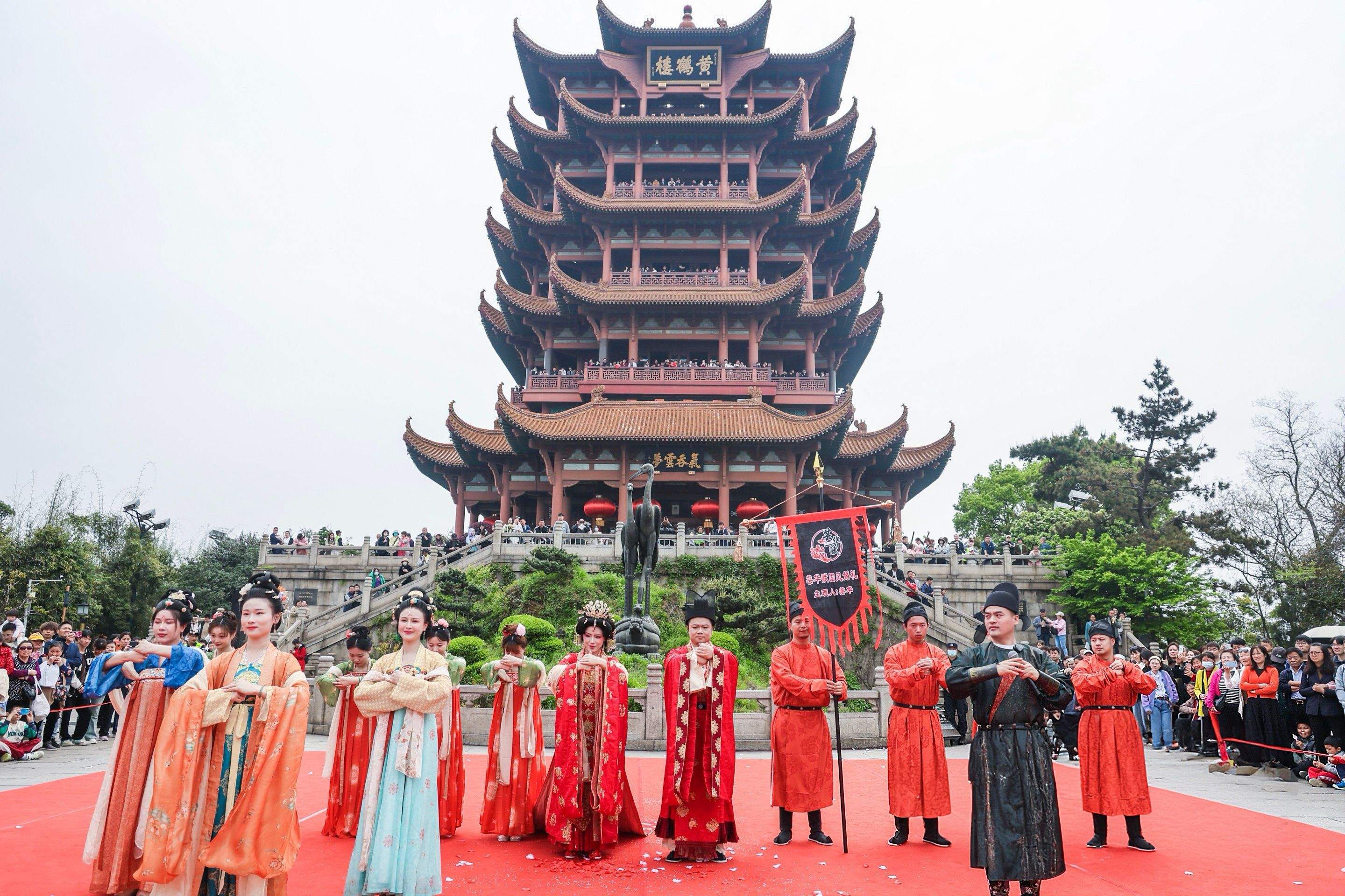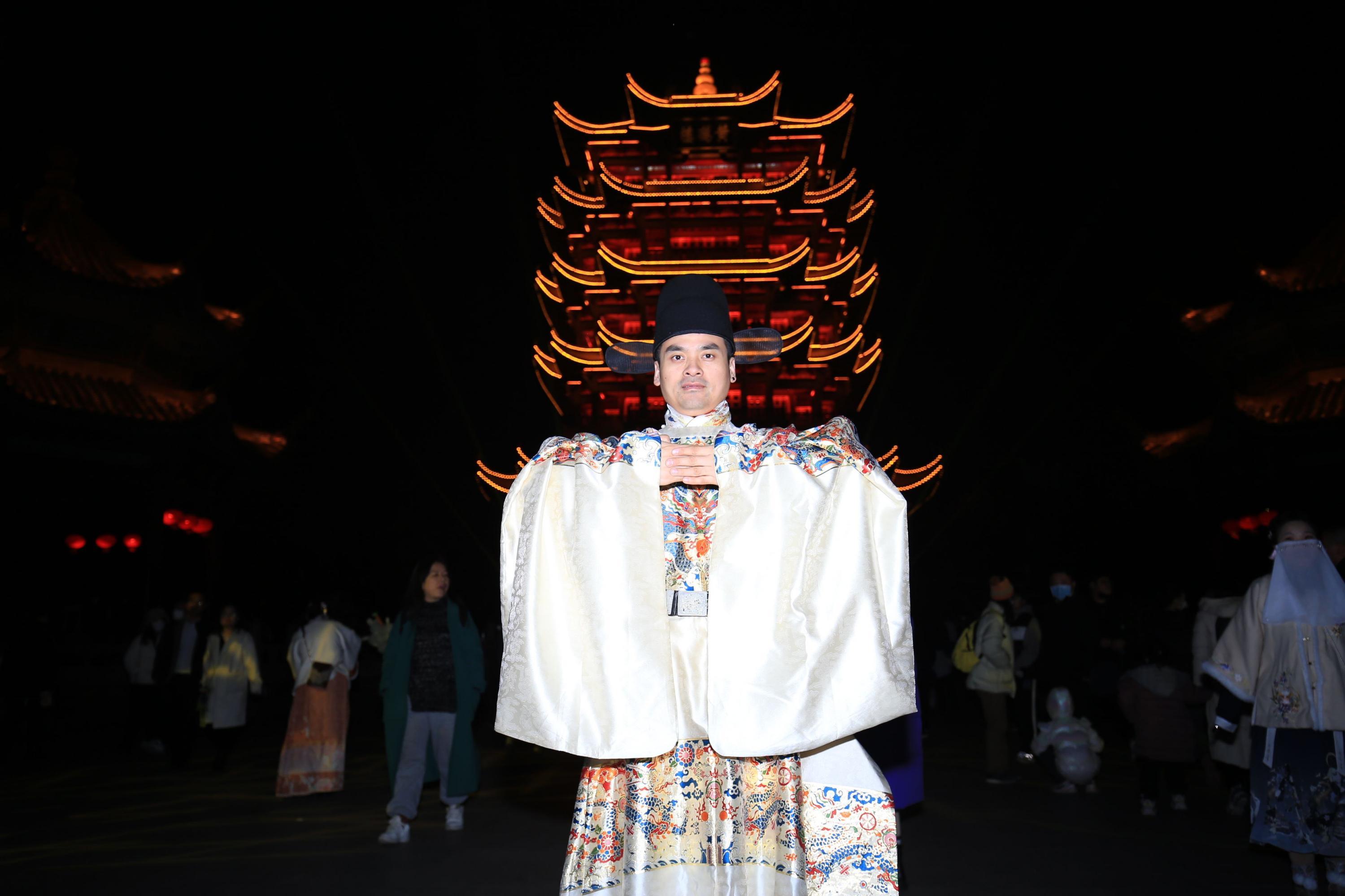 姜华在黄鹤楼主持中式婚礼秀。姜华供图