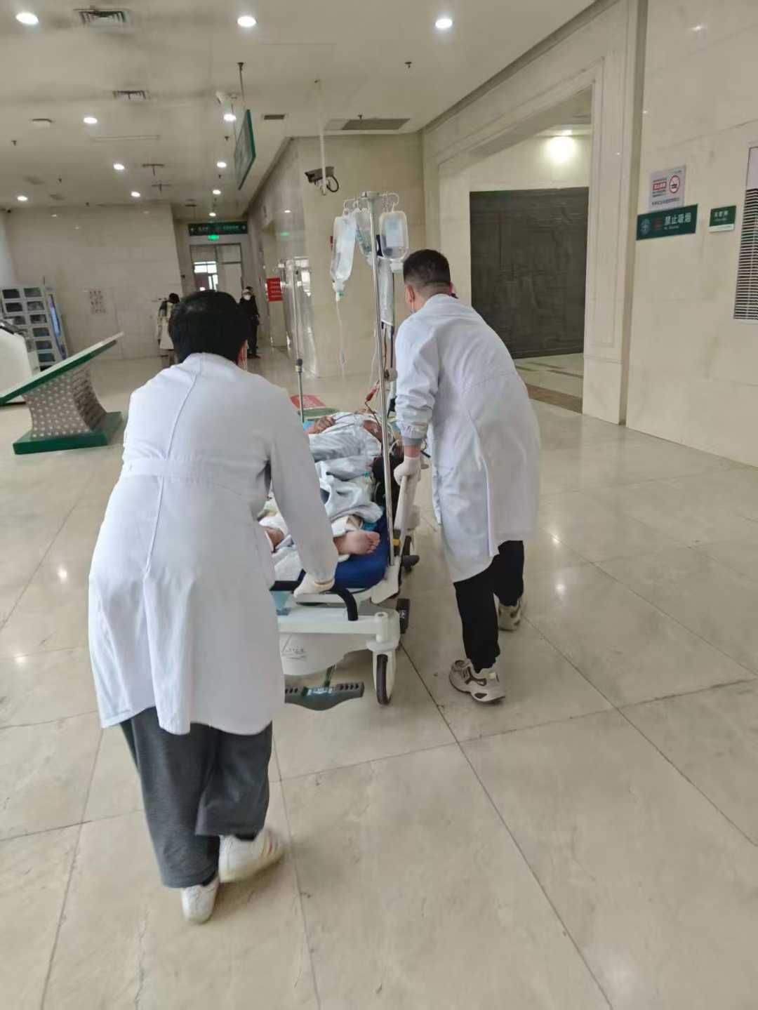 整个抢救过程紧张有序,所有参与医护人员全神贯注。创伤救治中心宋小龙医师全程紧密陪同患者进行检查、转运,直至患者安全进入手术室及术后转入重症监护室。抢救告一段落,他才在同事提醒下发现,自己的一只鞋与另一只鞋的袜子已被患者滴落的鲜血浸透染红。