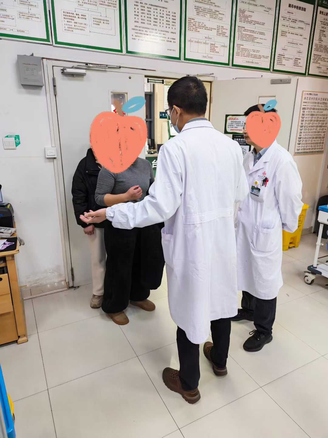 专家与家属沟通救治方案。
