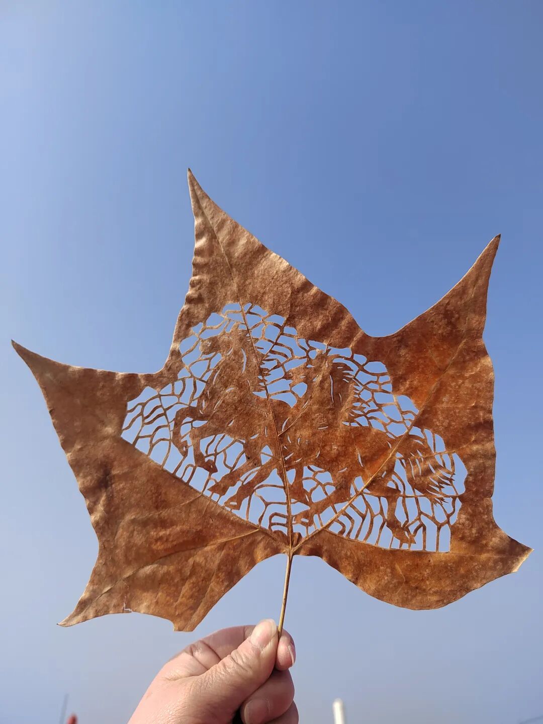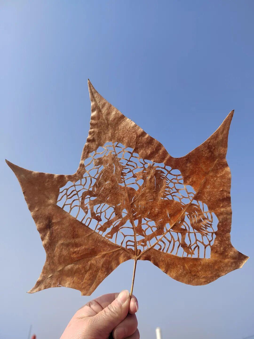 它们不再是枝头随风飘落的枯叶,安安静静趴在桌上,等着我用指尖的温度、刻刀的轻划,赋予它们不一样的生命。