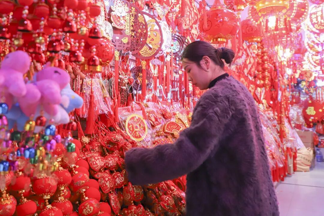 临近春节,汉正街打年货的市民络绎不绝,丰富多彩的过年装饰品琳琅满目。