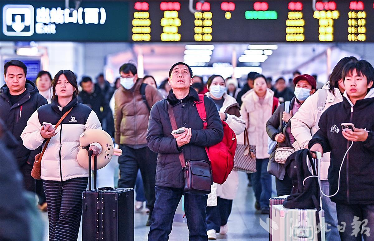 2月2日,是2026年春运首日,武昌火车站旅客明显增多。(湖北日报全媒记者 朱熙勇 摄)