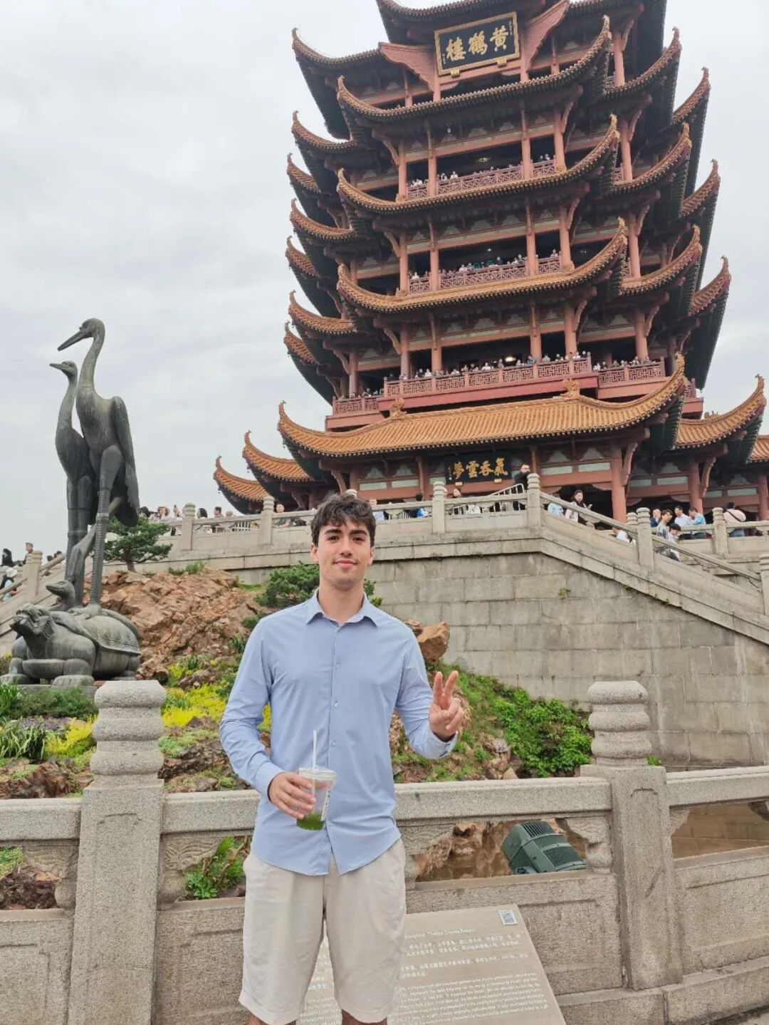 西班牙籍留学生李安在武汉黄鹤楼。