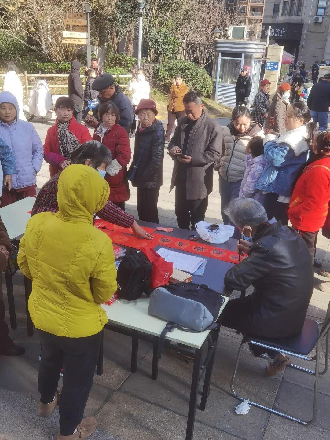 “江老师,今年又来给我们写春联啊!”一位居民笑着递来一杯热茶,“我家小孙子中考那年就是您帮忙写的春联,今年他要考大学,还是请您给写个‘金榜题名’的春联吧。”