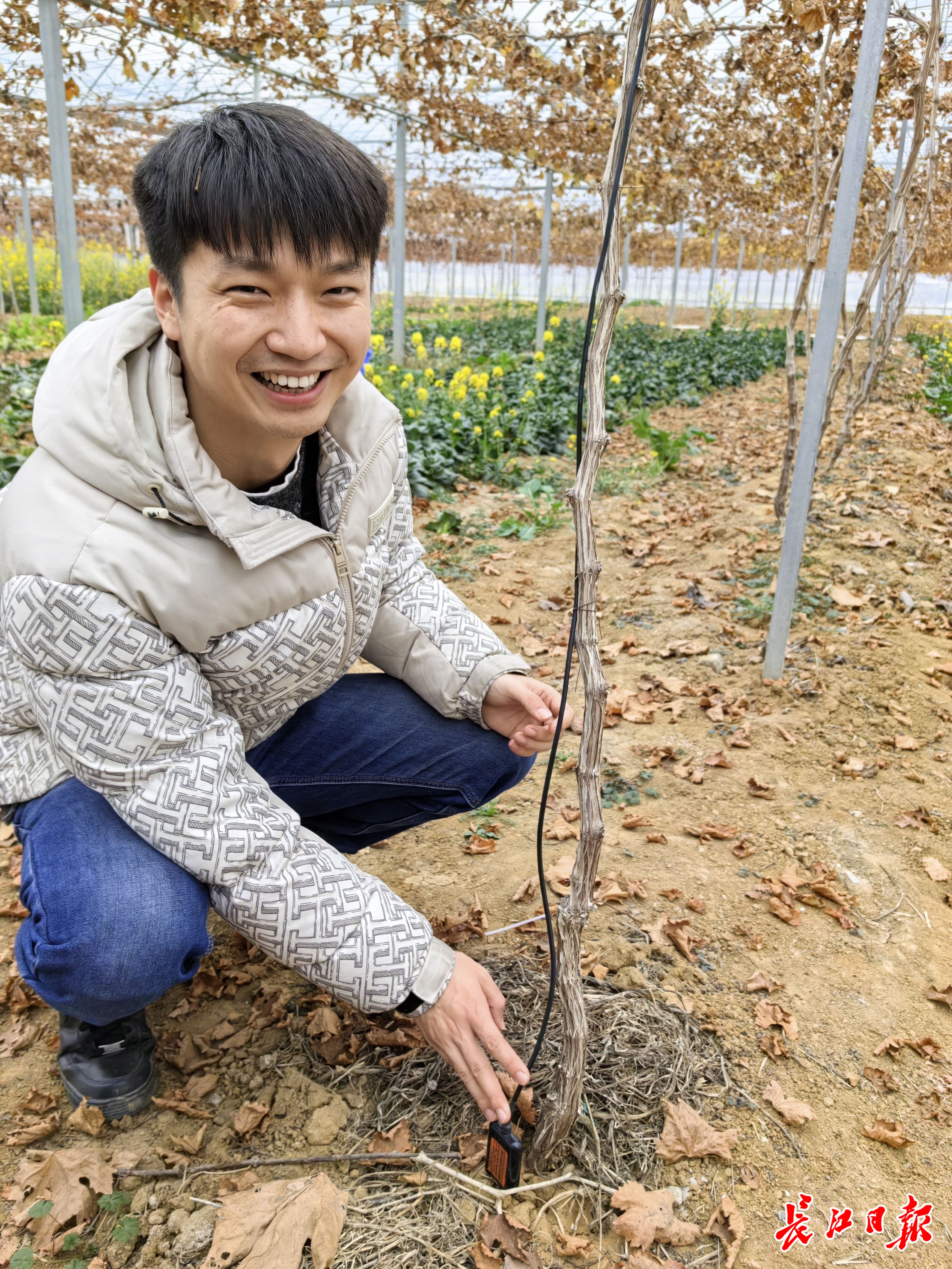 “我们没有种植这些‘外来’葡萄,而是试种了中国科学院植物研究所近年来通过品种审定的三个国产新品种——京香玉、京艳、京焰晶。”考虑到这3个新品种属于“北果”,习惯于北方干凉气候,“跨越”长江种植就需要观察了解其生长细节,公司联合江汉大学研究团队,使用了新研发的“微液滴界面技术”,帮助葡萄更好地扎根南方,成为“南果”。