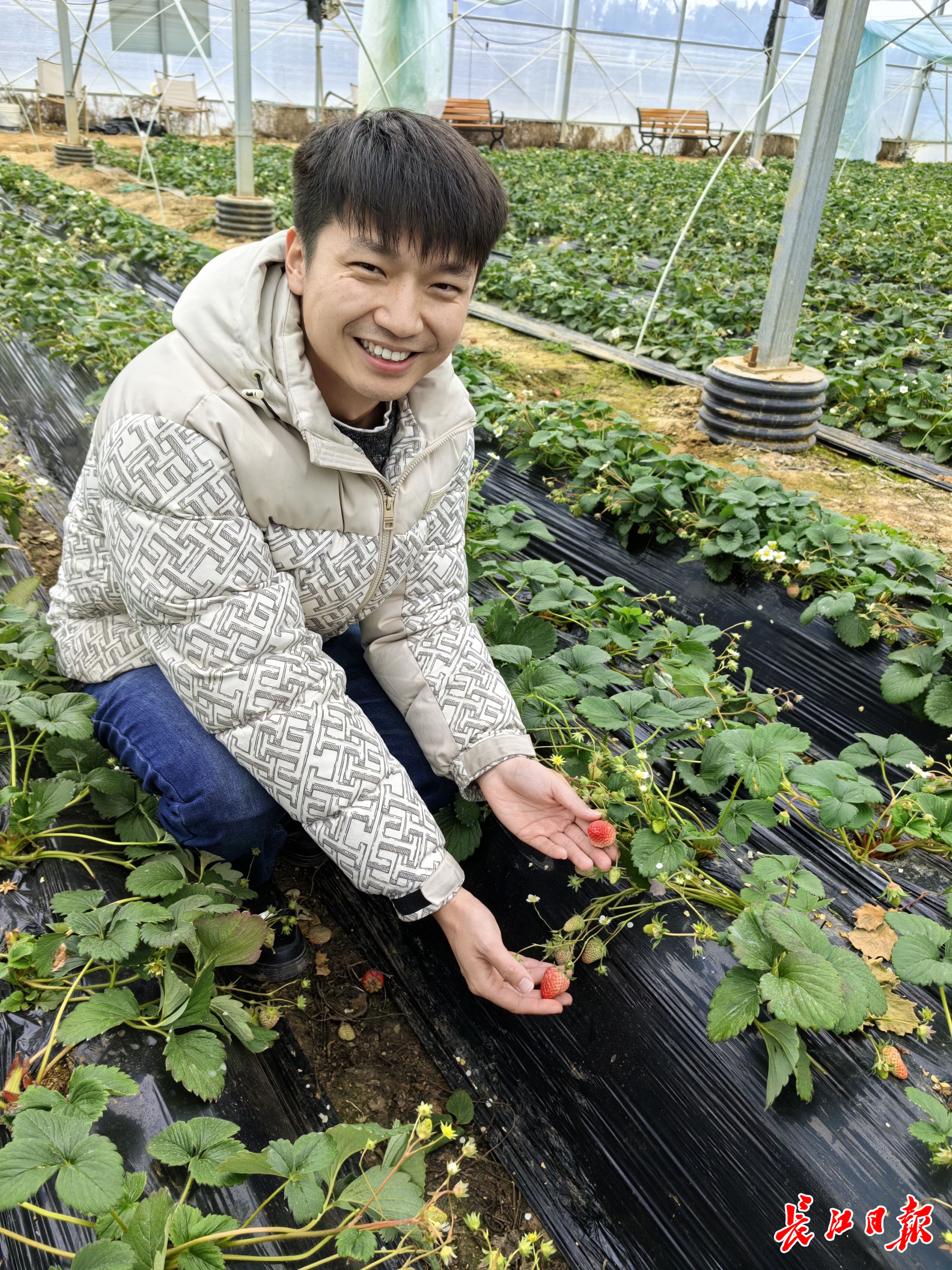 2月6日下午,在青山区八吉府街道后山村山边湾的草莓大棚里,游客陈婷丽一边采摘着艳红的红颜草莓,一边与长江日报记者聊起了感受:“甜,香!这个果子味道太正了。”大棚外,几位村民感慨,今年,这座村子人气更足了。