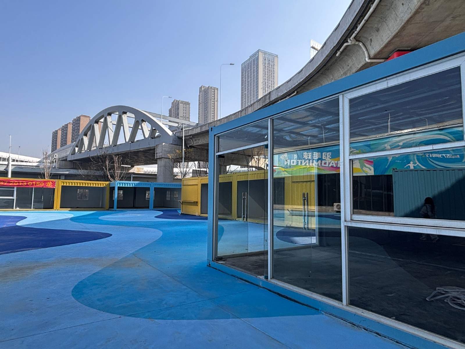 8、武汉一高架桥下变身居民“后花园”,配置网球场、羽毛球场及百余个停车位