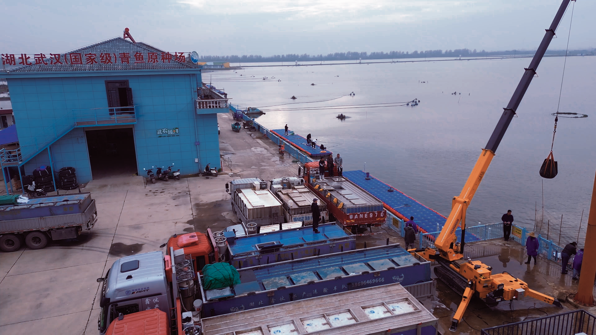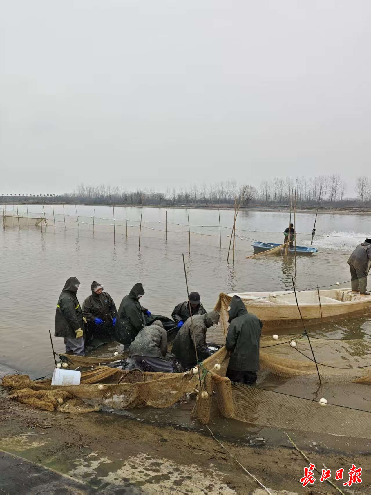 “一、二、起!”2月10日早上8点,位于长江新区的湖北武汉青鱼原种场传出一阵嘹亮的号子声。寒风吹得塘边芦苇哗哗作响,802号鱼塘边却是一番截然不同的火热景象。