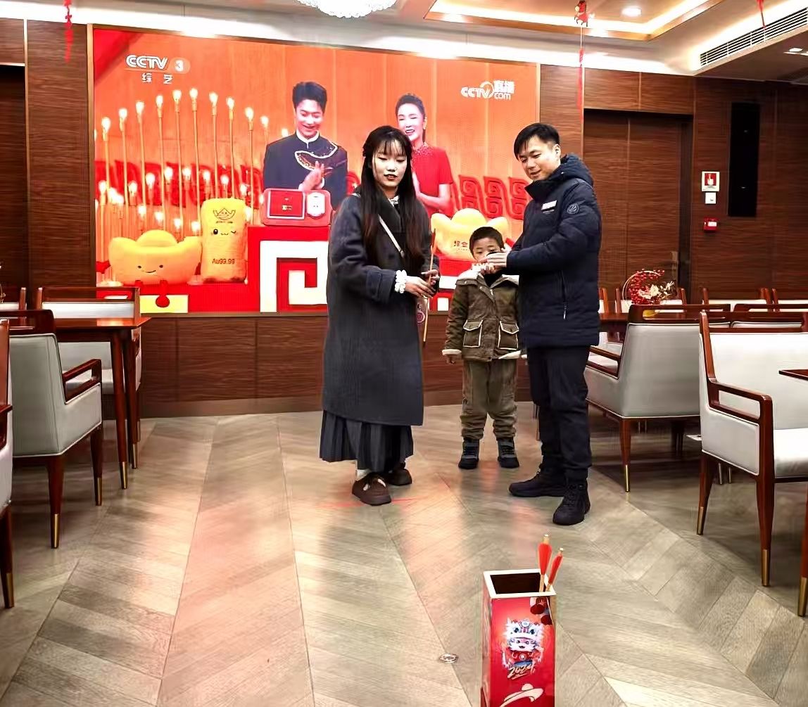 除了看春晚、赏江景,游船上的非遗互动区更是欢乐的海洋。“利记号”“钟子期号”游船设置年画拓印、投壶、五子棋等传统游艺项目,游客既沉浸式体验民俗乐趣,还可兑换新年礼品、二消优惠券,现场年味浓郁。