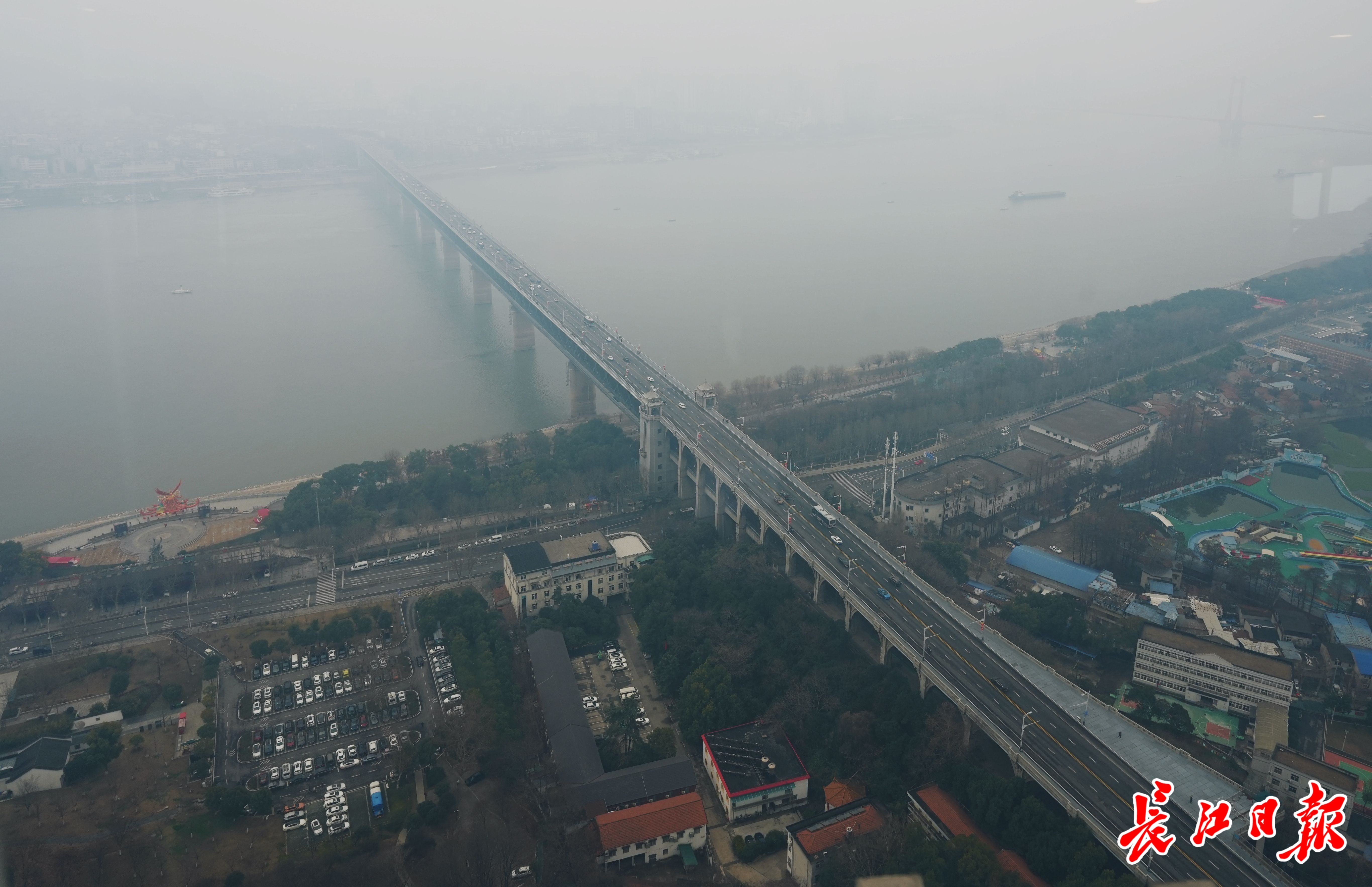 从龟山电视塔观景平台,远眺长江大桥。