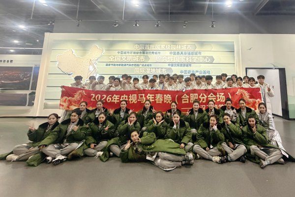 今年除夕,合肥分会场以《合韵满江淮》为主题惊艳亮相,将徽风皖韵的柔韧含蓄与“科创之城”的硬朗锋芒完美交融。在这场传统与科技交织的视听盛宴中,武汉工商学院承担了该节目的开场呼号、矩阵击缶、合唱伴舞三个板块的演出任务。