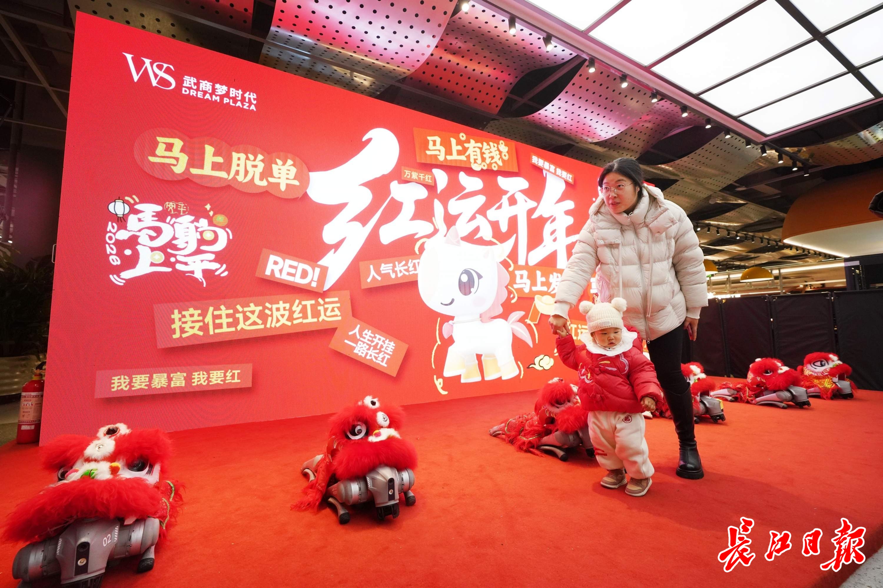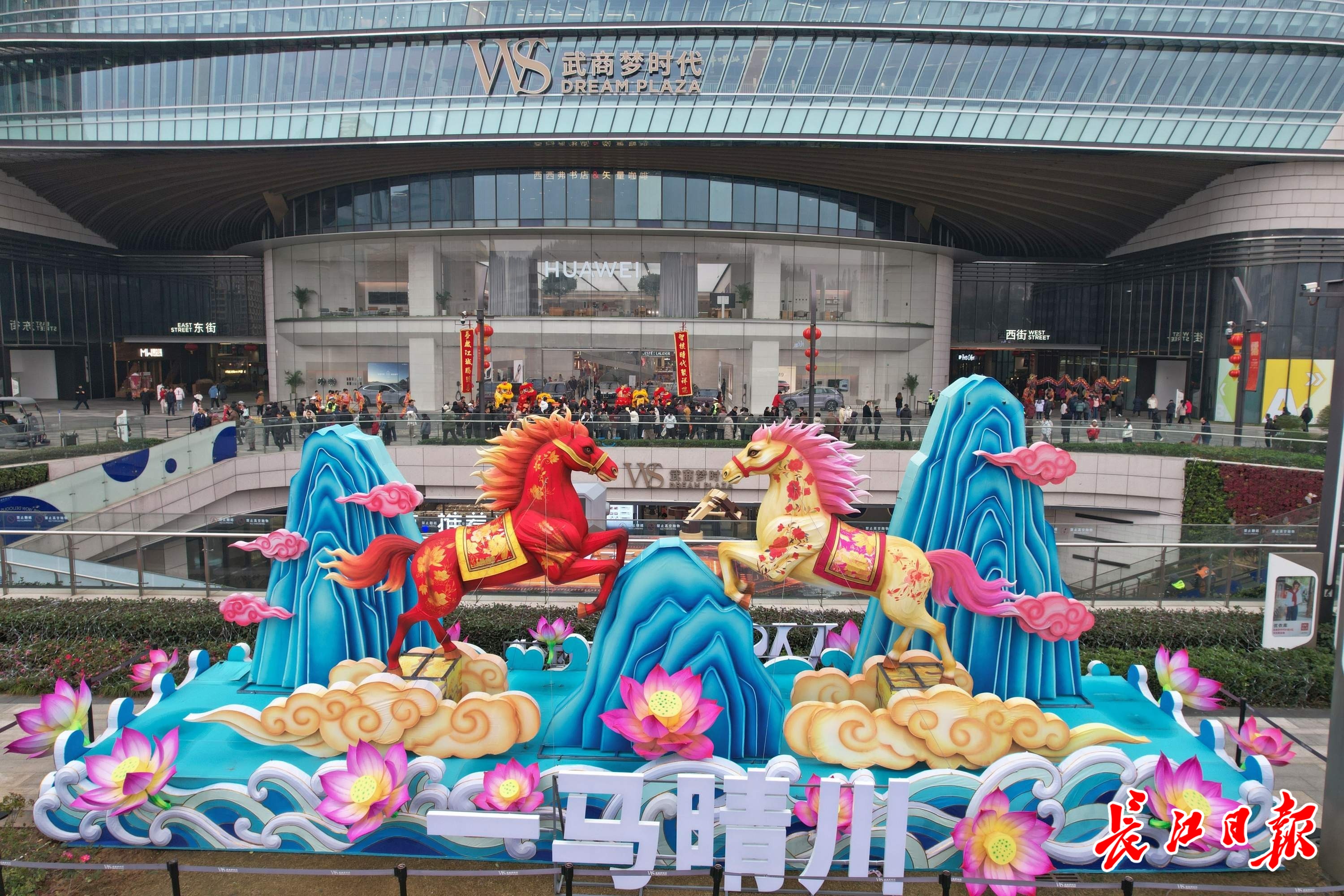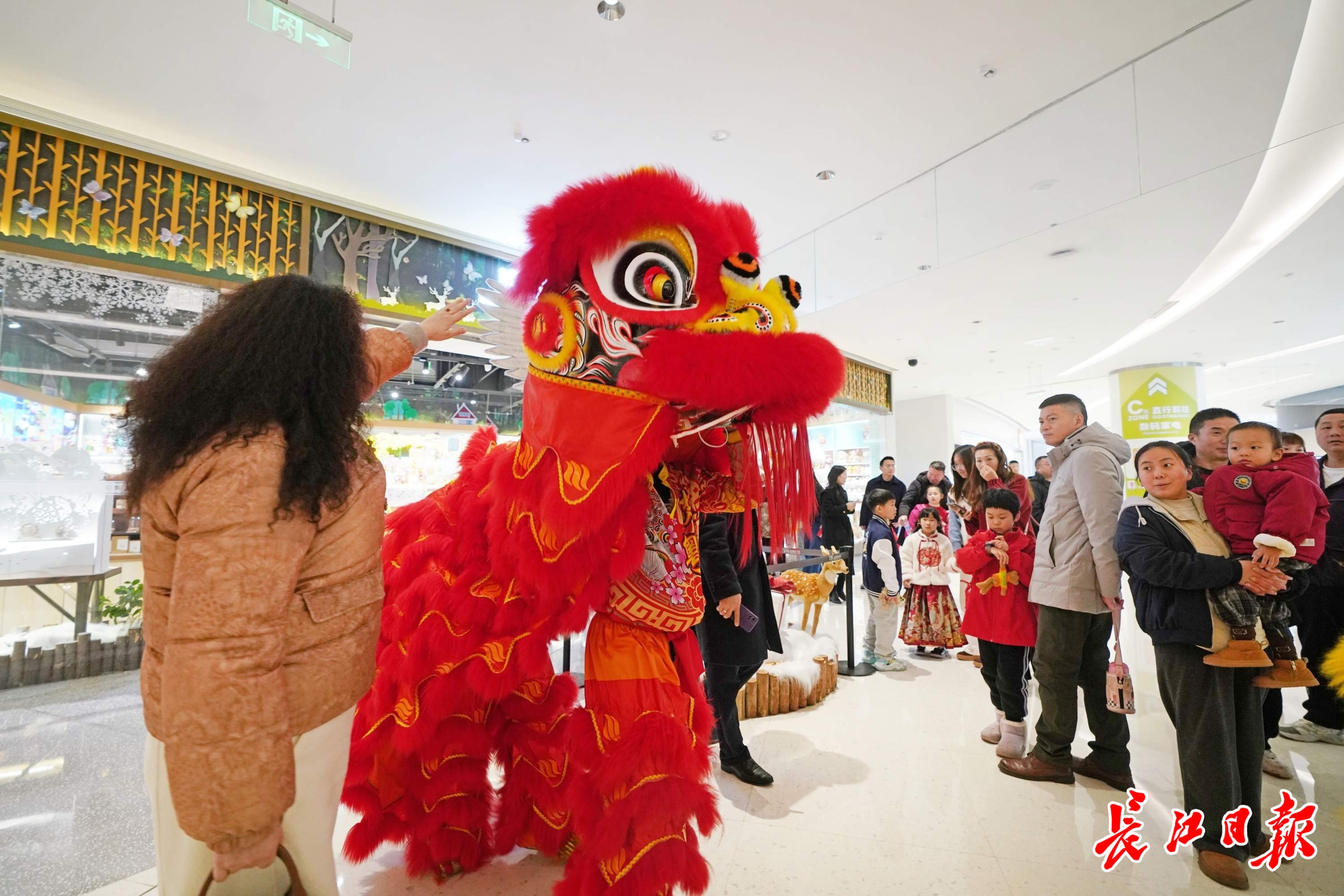武商梦时代广场张灯结彩,龙腾狮跃,年味拉满。