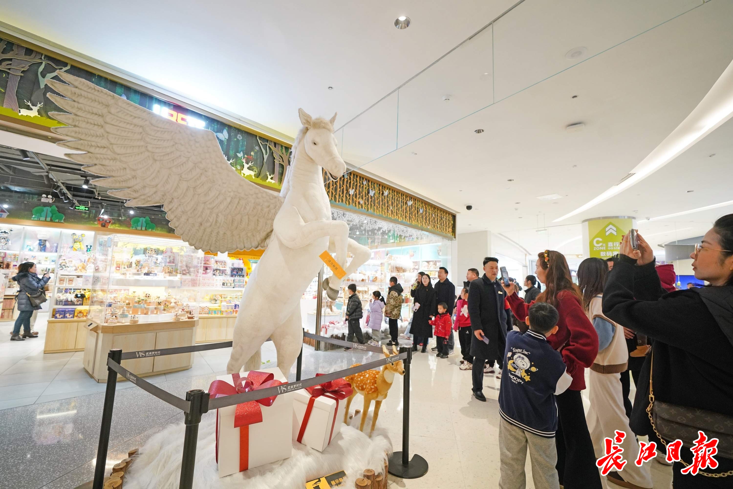 武商梦时代广场,一匹展翅的“白马”吸引市民驻足观赏。