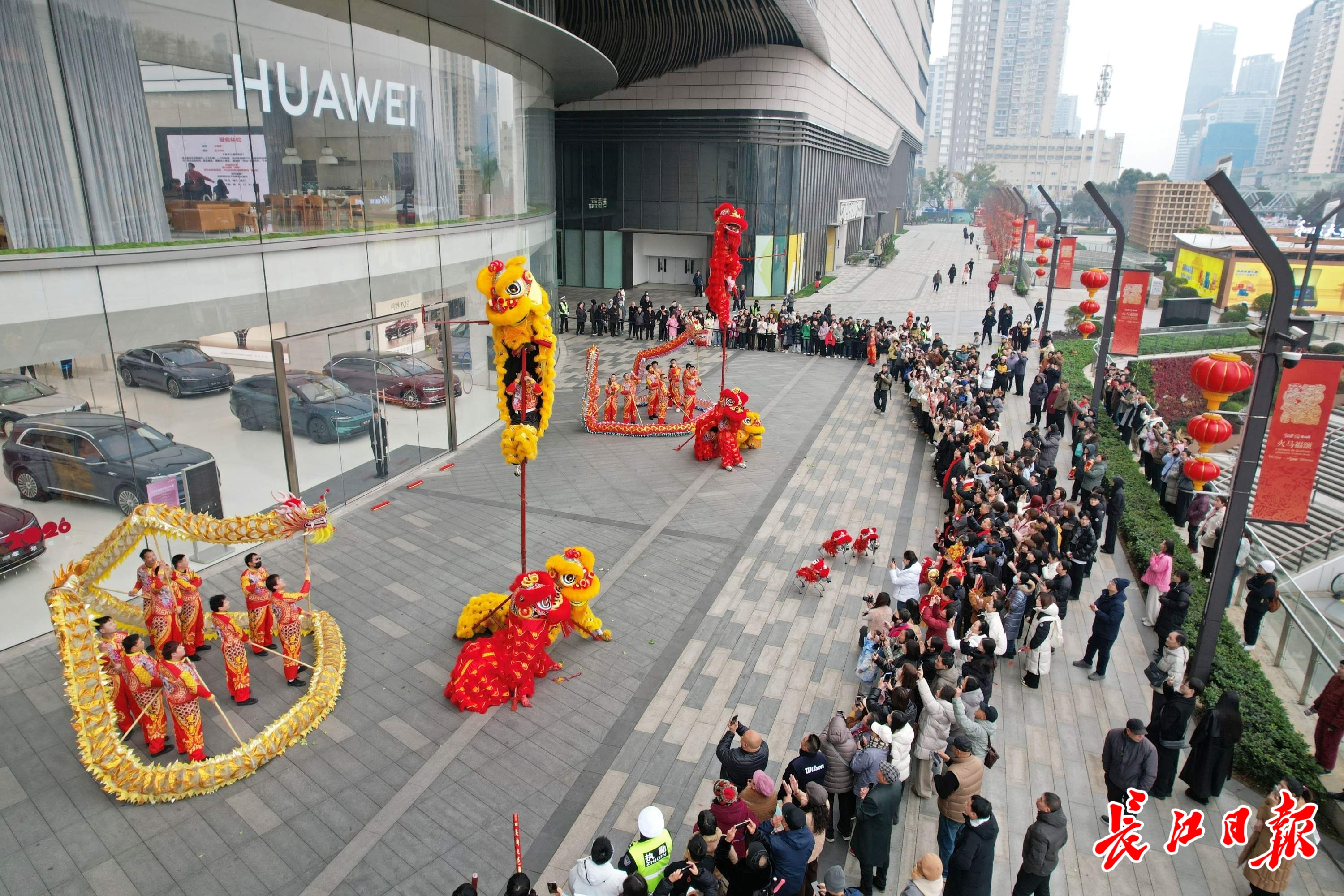 武商梦时代广场前龙腾狮跃,年味拉满。