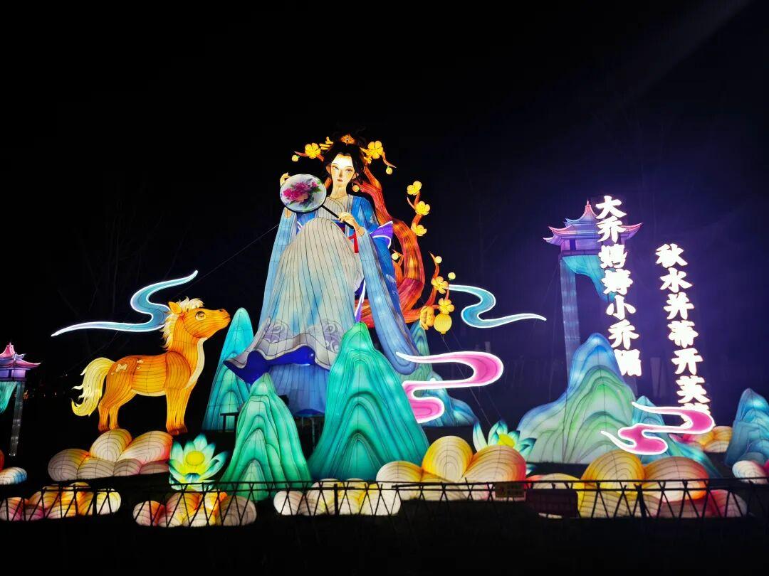 武汉园博园含有马元素的大乔人物花灯。@褚 摄