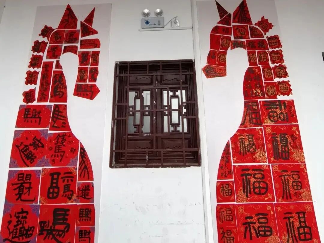 剪纸贴的两匹马。@媛媛 摄于龟山公园