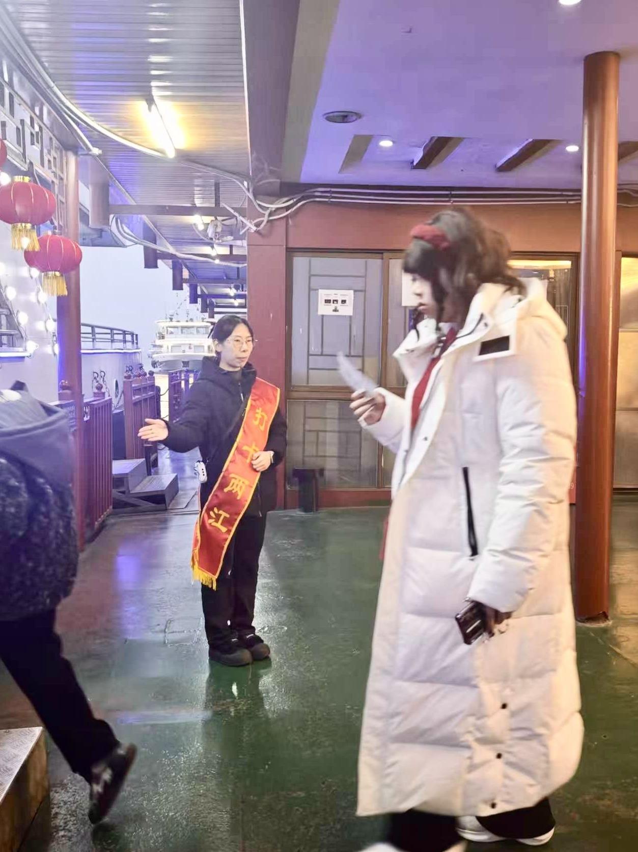 “下一班游船还需等待10分钟,请您到候船室就座”,春节期间,检票员龚娴的声音在检票口此起彼伏,几乎没有停歇的时刻。她的工作不仅限于检票引导,更是游客登船前的一道服务与文明关。面对游客五花八门的问题,她也总是耐心解答。