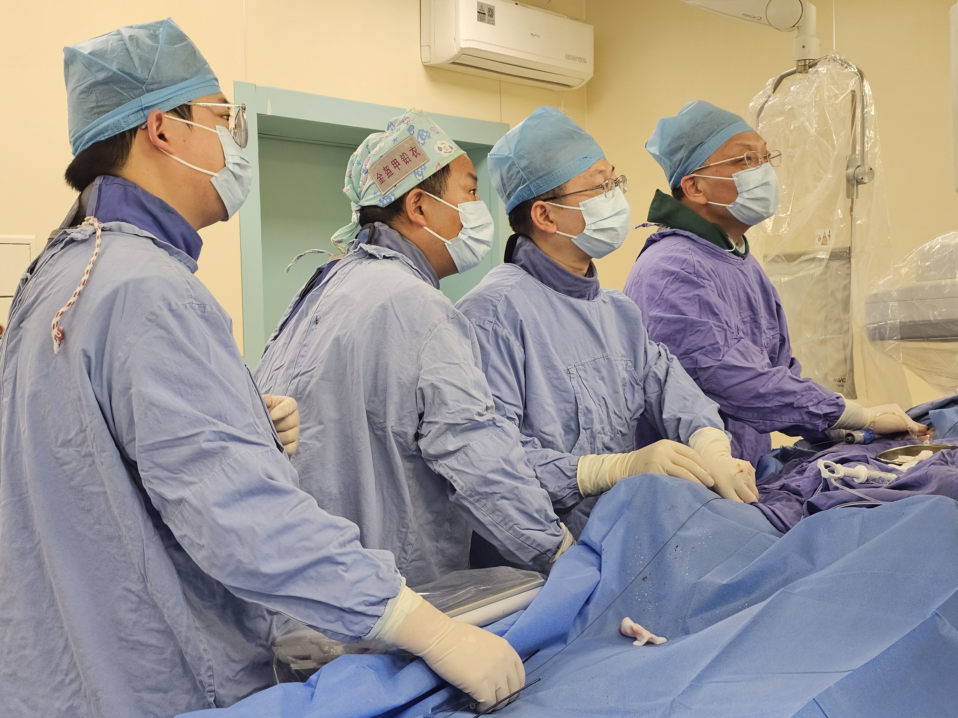 患者刚刚植入心脏支架,不能停用抗血小板药物,如果植入传统心脏永久起搏器,囊袋出血风险极高。术前讨论时,心内二病区主任晏凯利表示,治疗的核心既要解决传导阻滞问题,又要避免传统手术带来的出血风险。最终团队决定采用新技术:植入双腔无导线起搏器。