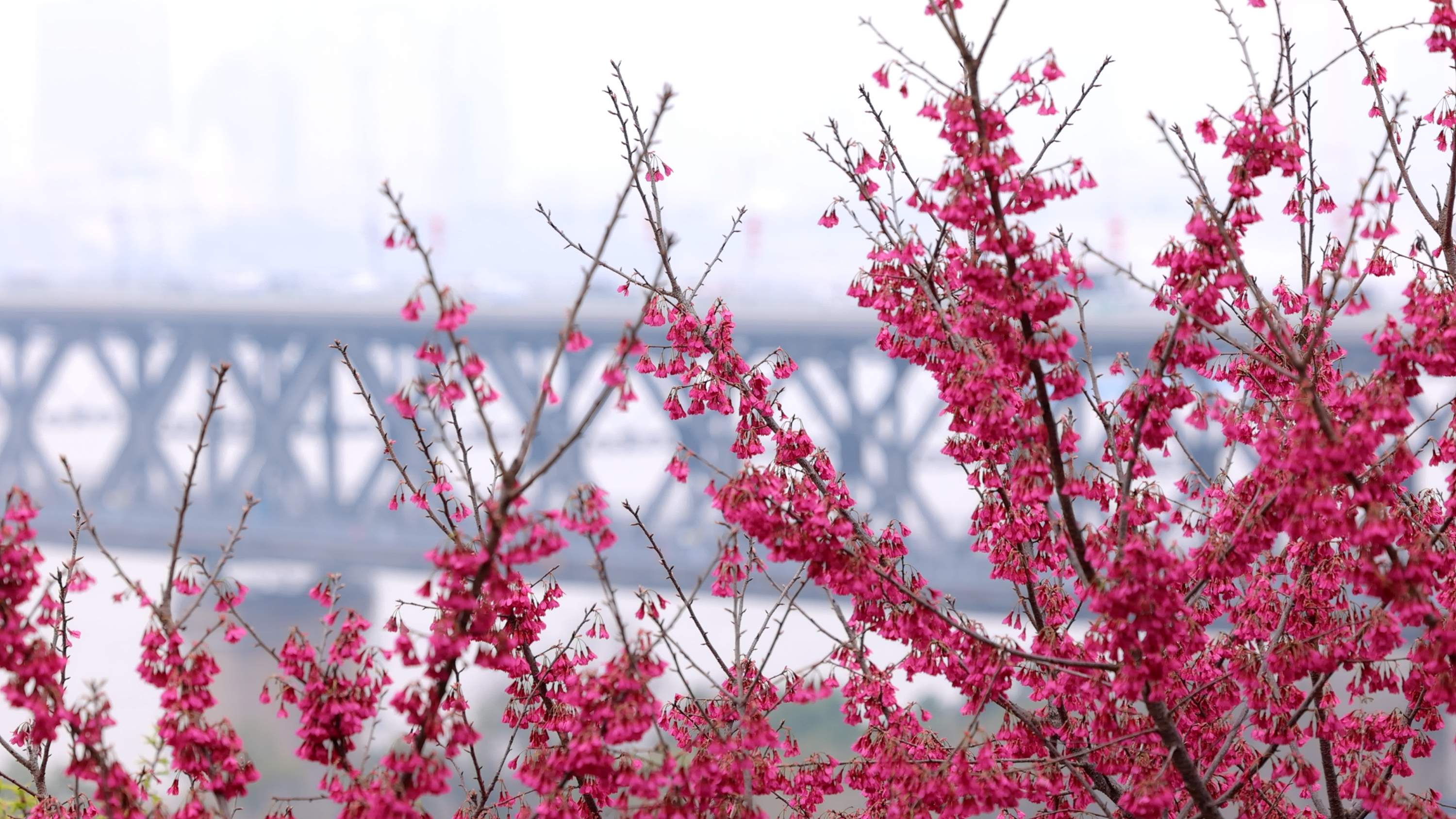 福建山樱花与长江大桥同框。 刘雍涛 摄