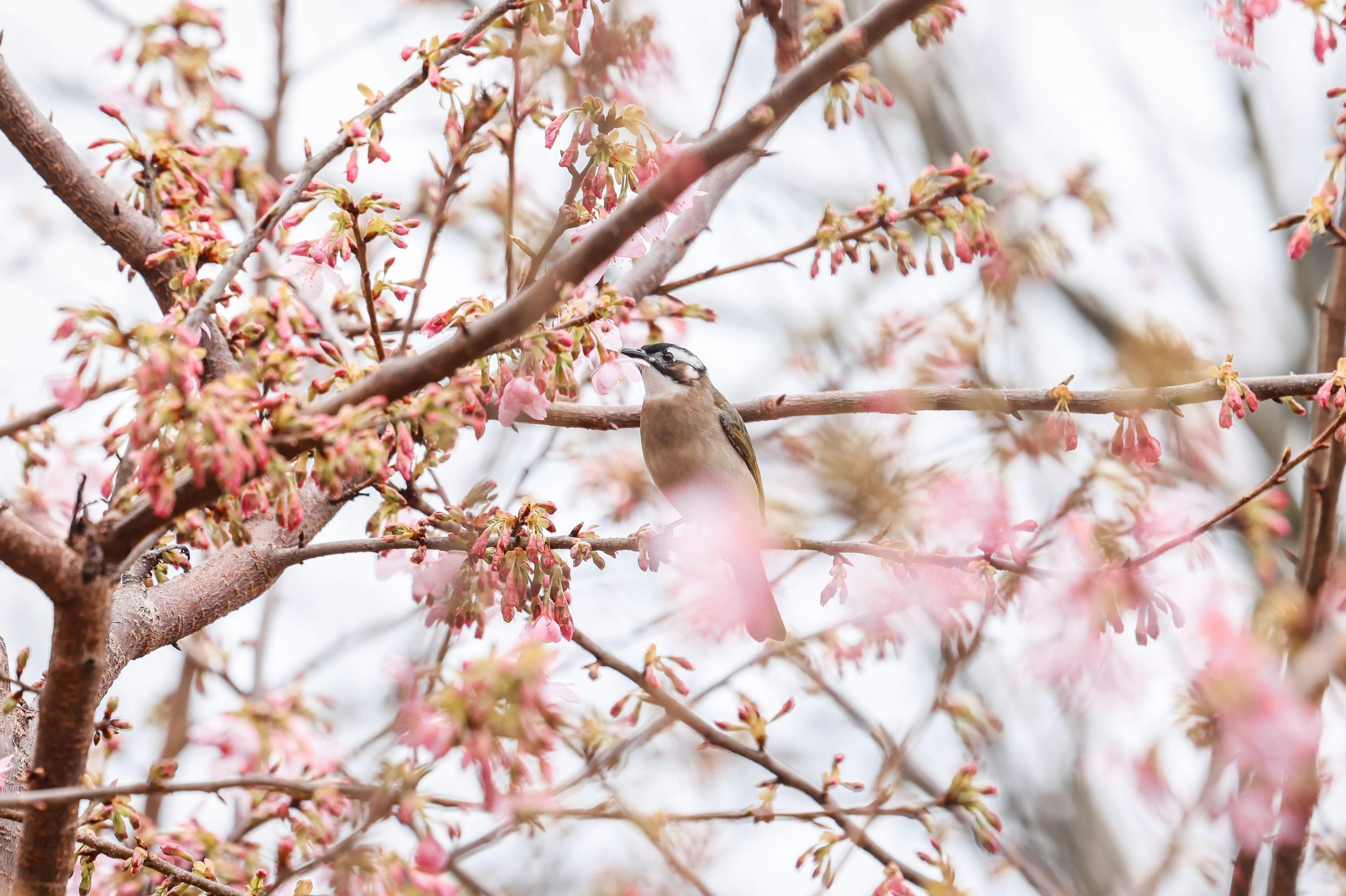小鸟在樱花树上赏花。 刘雍涛 摄