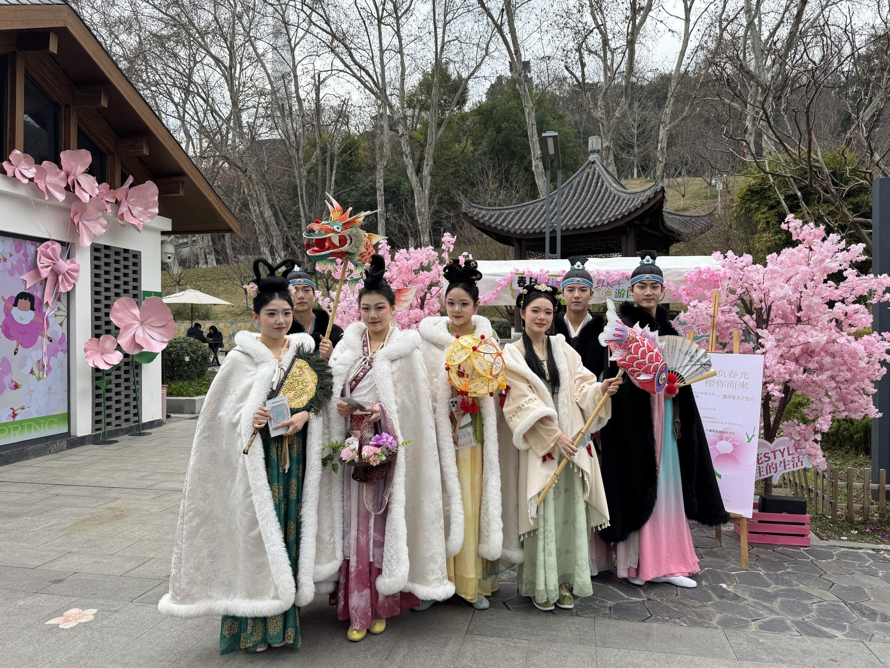 园区内设置多处唯美打卡点,樱花造景、春日诗歌、樱花主题花艺装置等氛围感十足。东门广场至知音殿沿途开展汉服巡游,游客们与身着华服的游园使者互动打卡。3月8日、3月15日,武汉爱乐乐团、准时迟到计划乐队将带来“樱”乐会快闪表演。