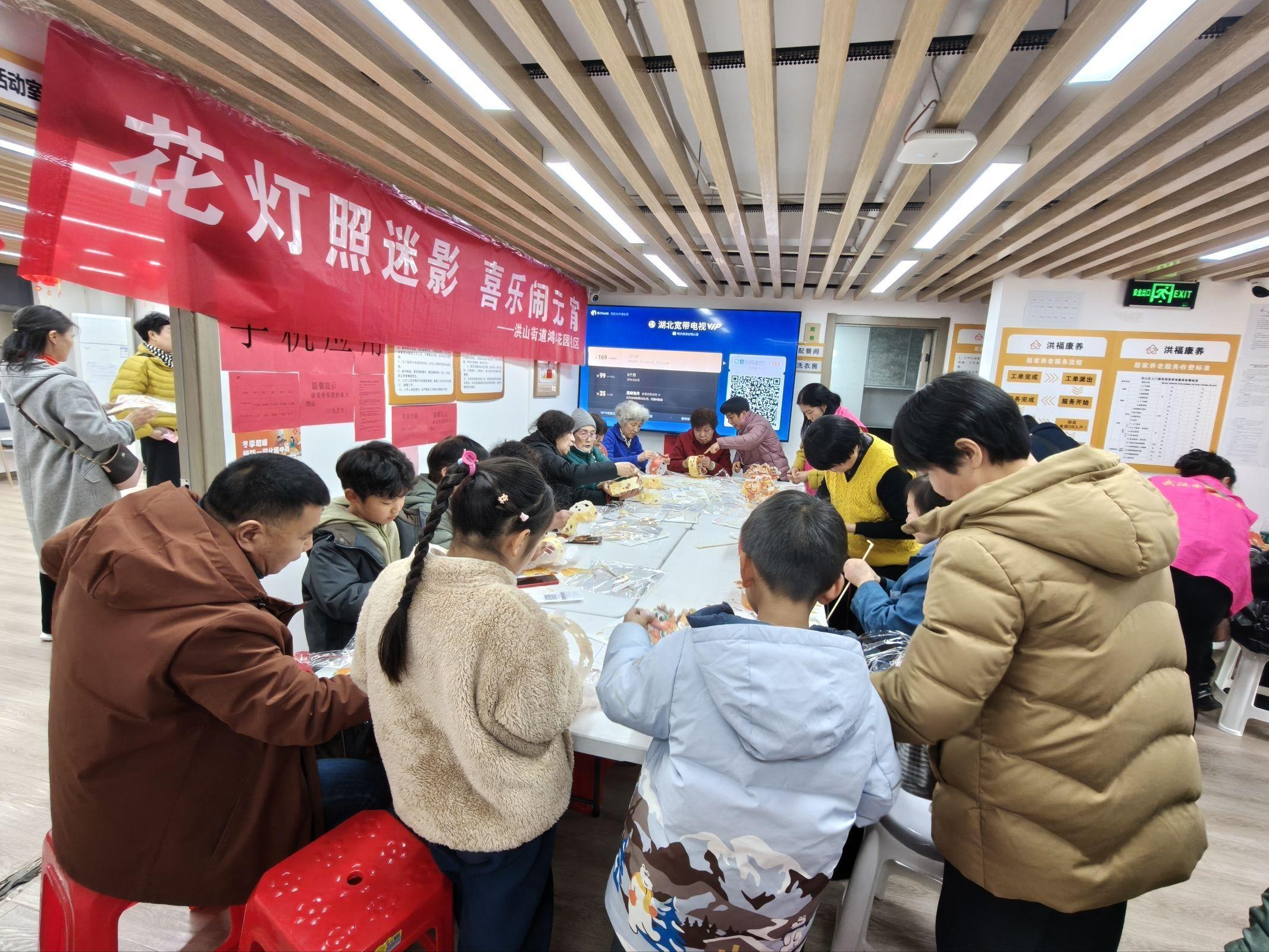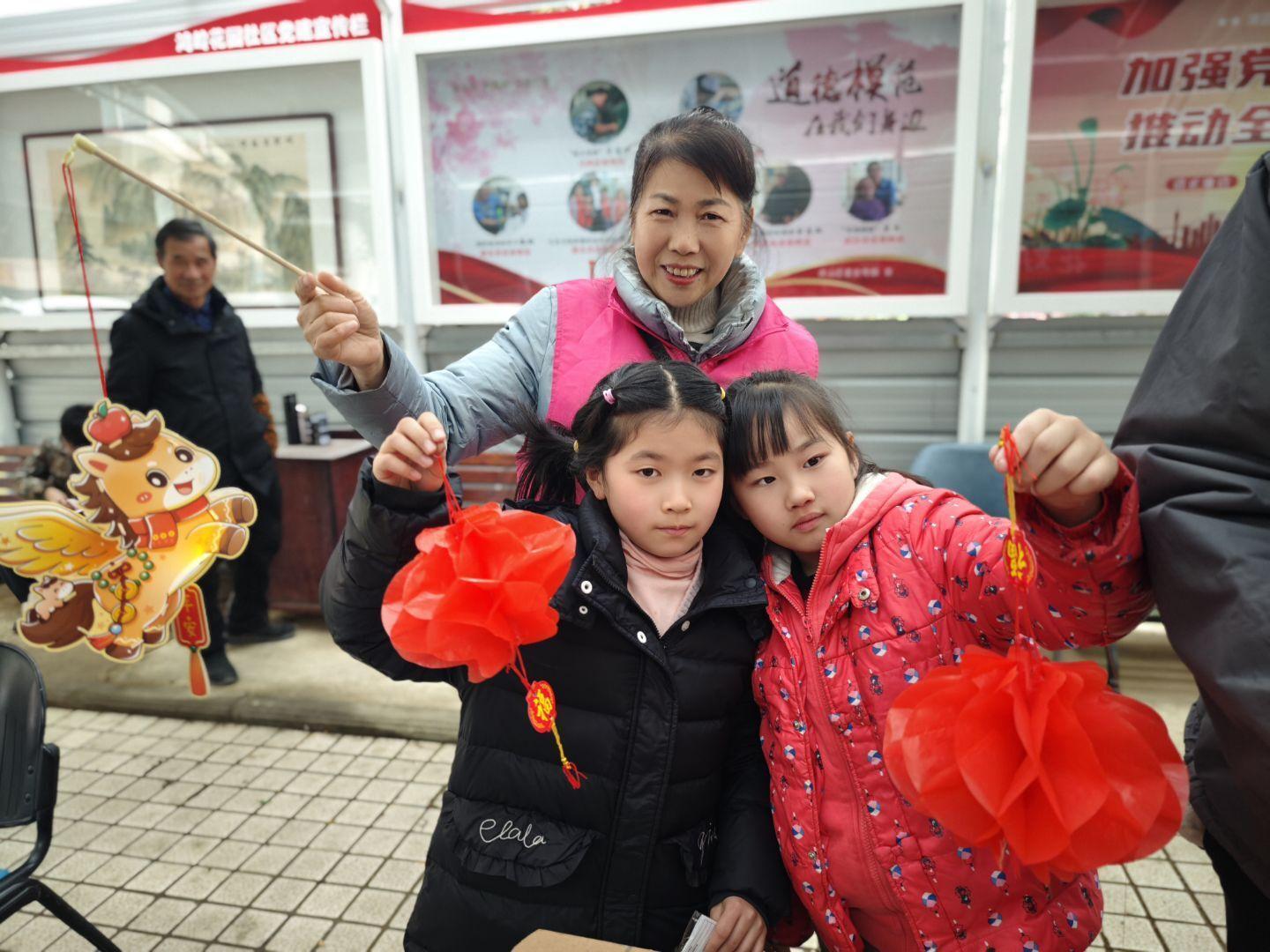 在猜灯谜区,百余条灯谜悬挂其间,居民们或凝神思索,或结伴讨论,猜中谜底时欢呼声此起彼伏,笑意盈盈。DIY灯笼区则满是亲子协作的温馨画面:家长与孩子一同组装骨架、点亮LED灯,一盏盏灯笼“活”了起来。孩子们举着完成的灯笼在广场上追逐嬉闹,交织成元宵节最动人的场景。