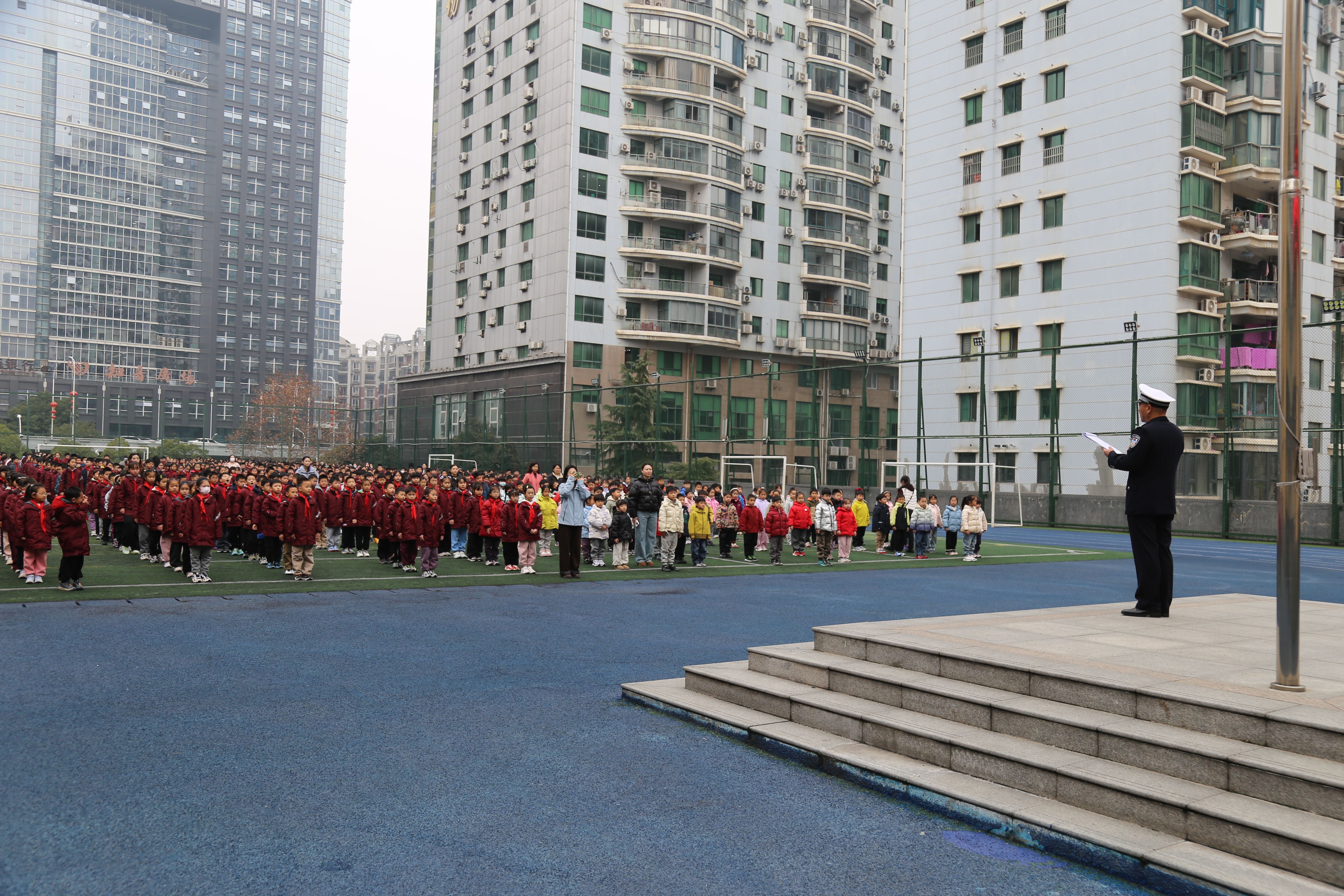 交警刘五桥在白鹭街小学操场上给全校师生授课。通讯员供图