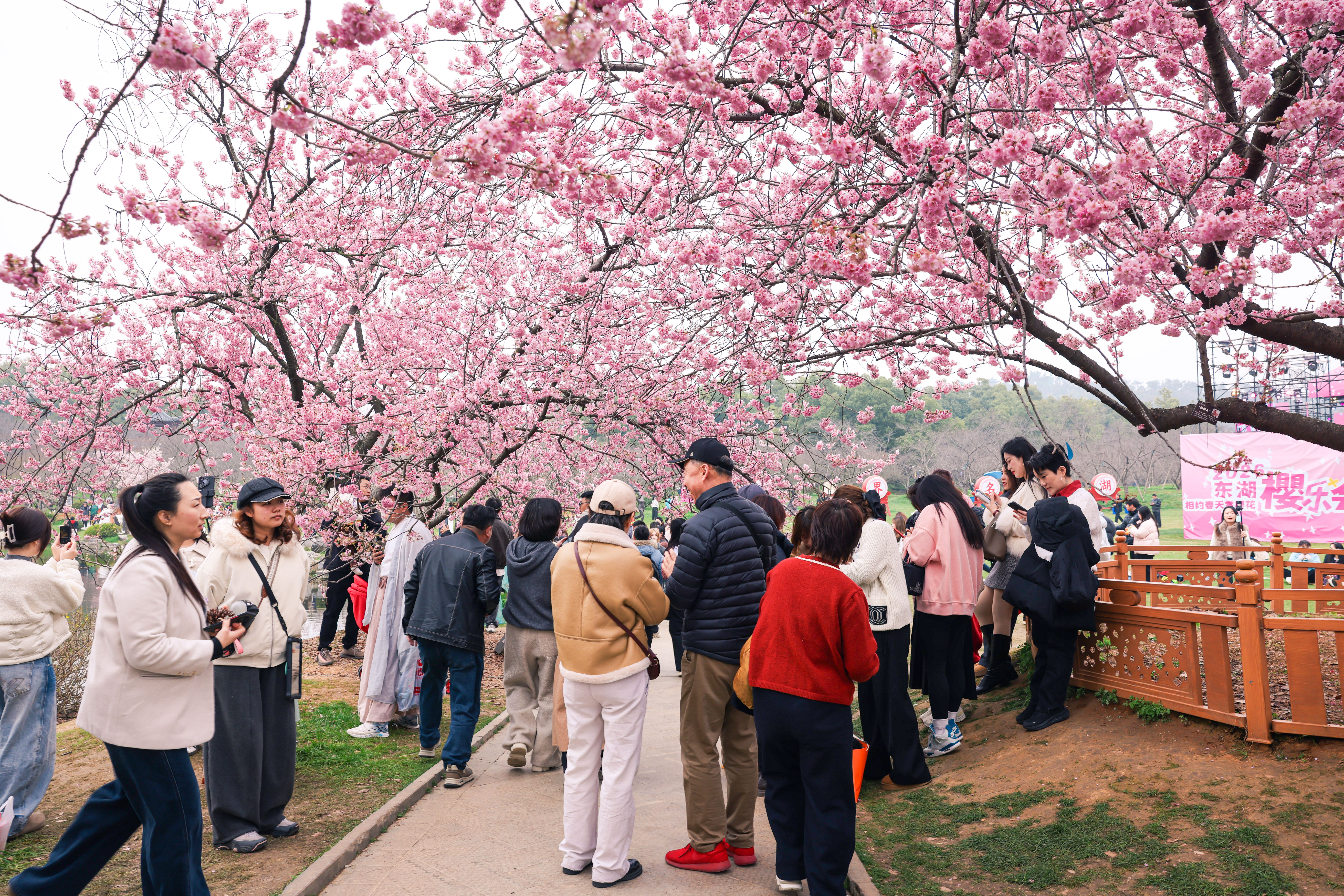 据了解,东湖樱花园今年完成了新一轮提质升级,面积扩大至550亩,首次设立了“中国樱花品种区”,全园樱花品种超过100种,并推出夜游赏樱、AI互动、机器人共舞、春日音乐会等一系列新体验,花期预计持续至四月。