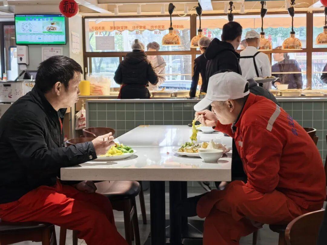 从驿站到商圈,暖“新”氛围随处可感。3月4日下午3点,午高峰刚过,兴发广场楼下已聚集不少等待接单的骑手。外卖员苏华涛熟门熟路走进至禧饭店幸福食堂,那是他常去吃饭的地方。“一顿饭均价15元左右,还能充电、接水、歇脚。”他说,跑单辛苦,但不管多晚,在这里能吃上一口热乎饭,让他感受到被尊重、被接纳。