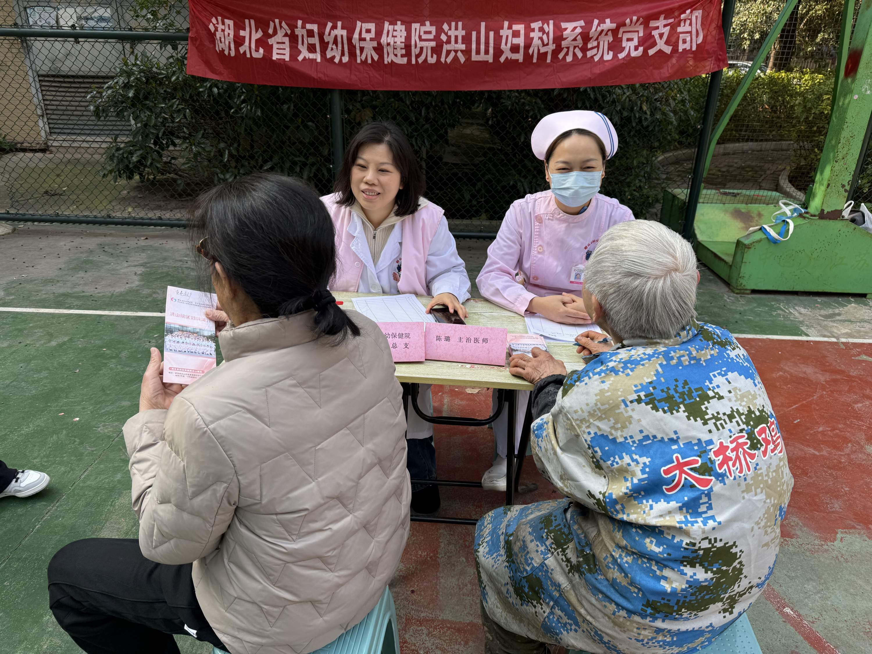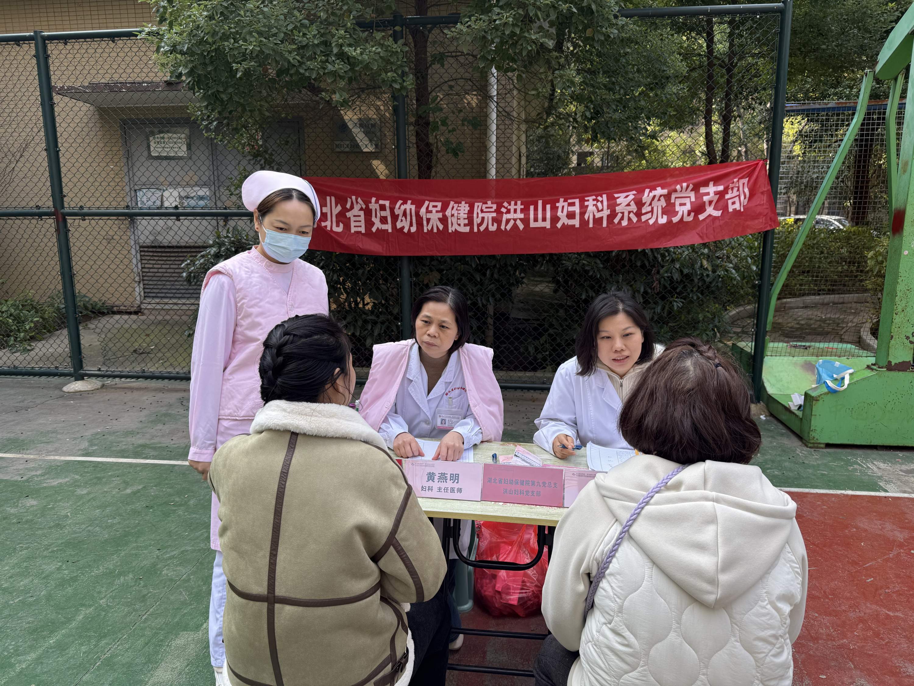 省妇幼洪山院区妇科专家黄燕明(左三)在长征社区进行义诊。社区供图