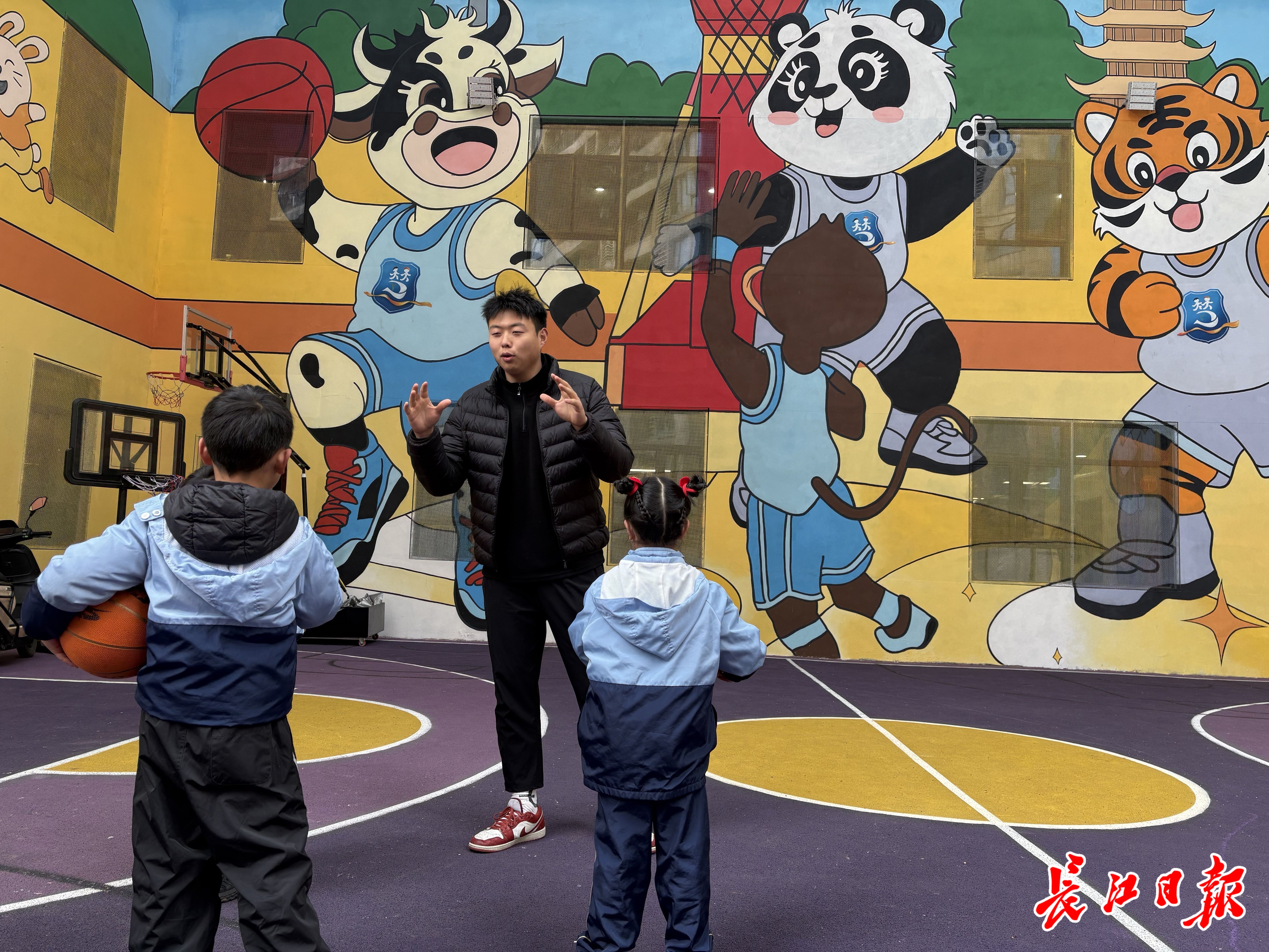和黄兆阳搭档的老师告诉记者,篮球里有一个步伐叫“侧滑步”,被黄兆阳设计成游戏“小螃蟹过河”。“孩子们参与其中,以为在玩游戏,轻轻松松就掌握了动作。”黄兆阳解释,这正是专业背景带来的优势,他懂得如何针对不同年龄段、不同特性的孩子开展教学。他举例,对于上肢力量不够的孩子,他会让孩子通过丢沙包的游戏来提升臂力,而不是枯燥地练习投篮。他还会教孩子跑步时用什么姿势不容易摔倒。