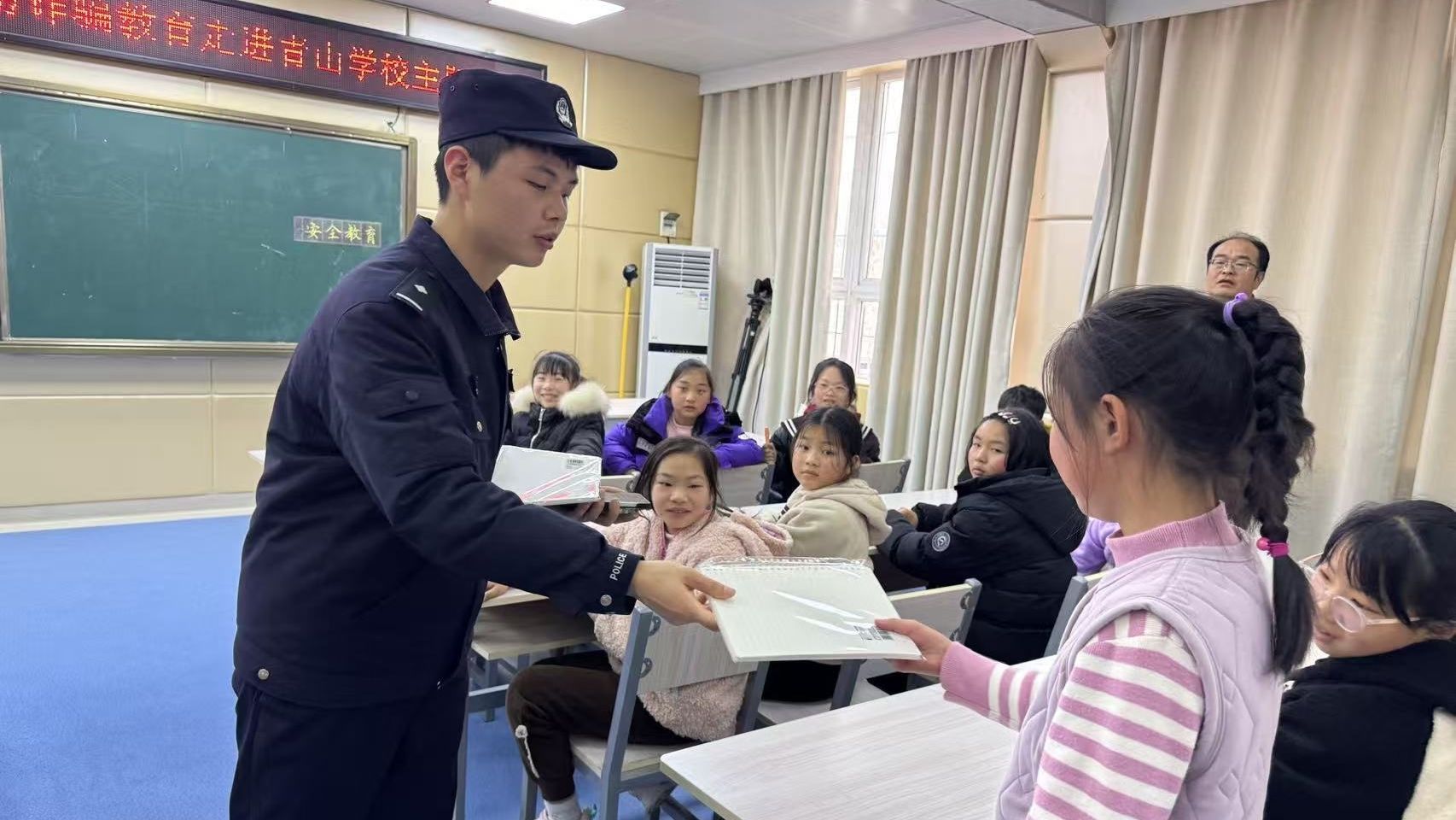 “同学们,英雄不一定是惊天动地的大人物,弯腰捡起一片纸、主动帮助一位同学,都是你们在做‘小雷锋’。”吉林街小学的 “开学第一课” 上,红卫路街派出所民警秦熙通过讲述雷锋故事,鼓励同学们从身边小事做起,乐于助人,争做新时代好少年。针对网络沉迷问题,她更是语重心长地引导:“希望你们都能做手机的主人,合理规划用网时间,培养健康的生活习惯。”
