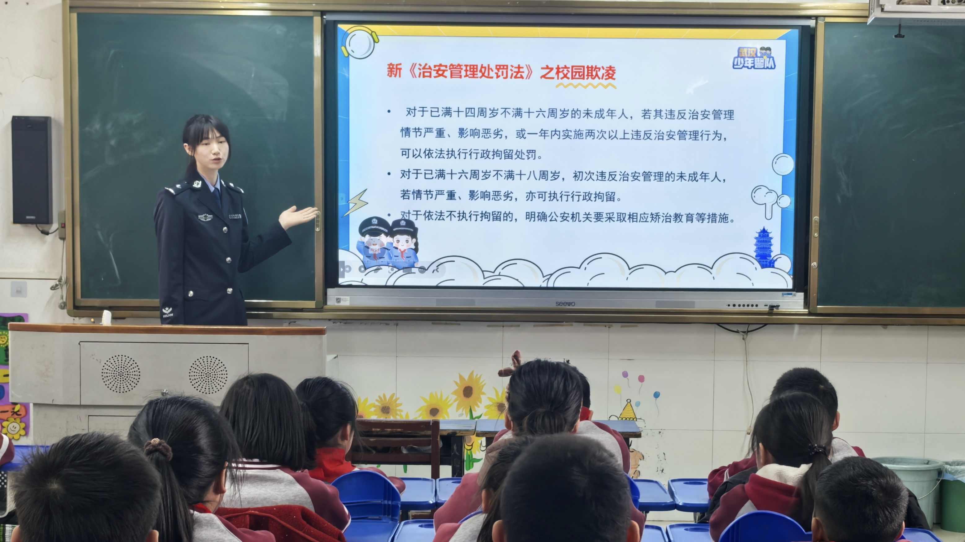 “大家要记住,推搡别人、给别人起难听的外号,都是欺凌!要是做得太过分,不光要赔钱、被学校批评,还会受到法律制裁!”钢花所民警张婷婷在宣讲中告诉钢城一小的同学们,校园欺凌并非“小事”,情节严重者将承担民事赔偿、行政处罚甚至刑事责任。