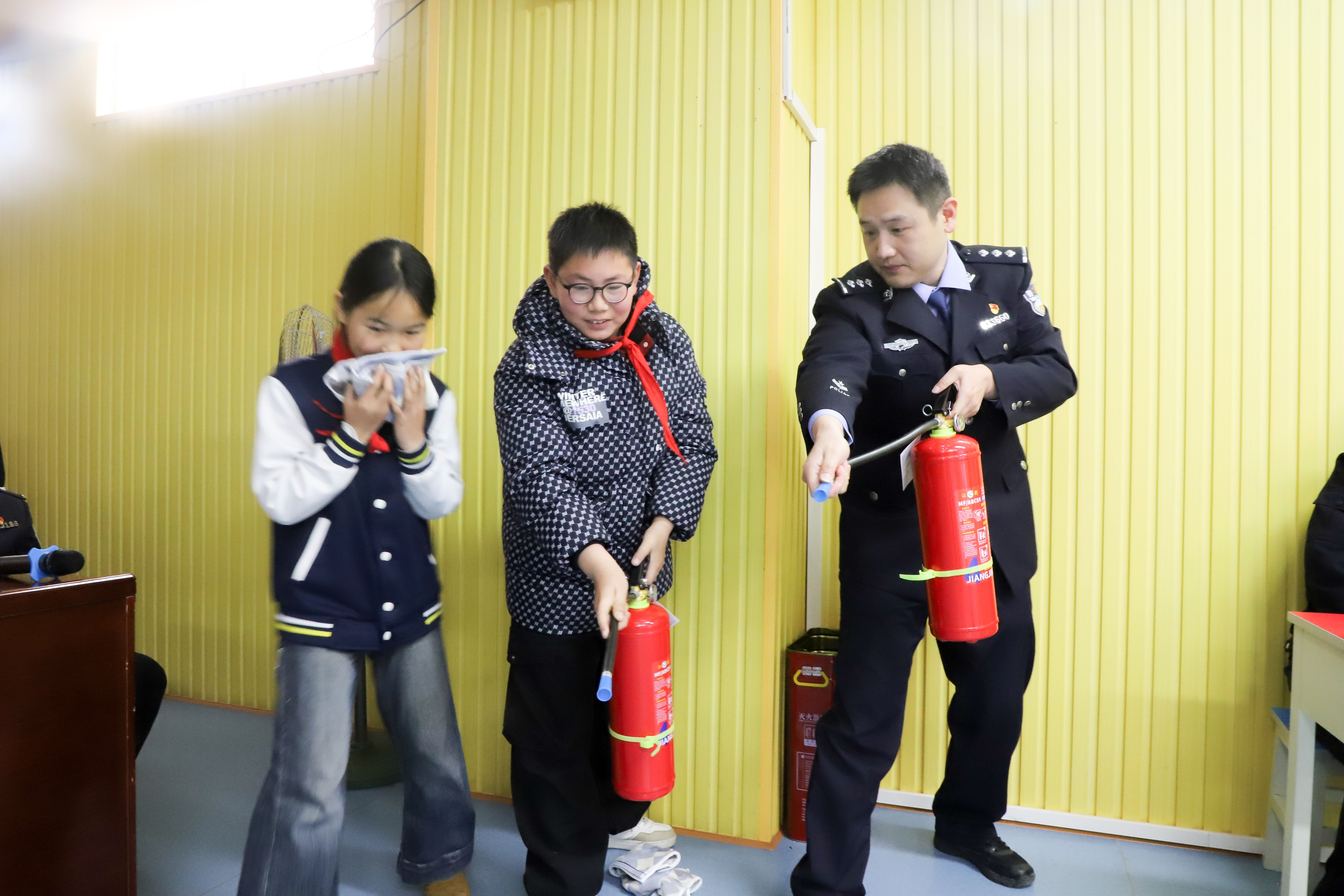 “火场逃生时,大家在打开任何一扇门之前,一定要用手去摸一下,如果门板发烫或是门缝中冒出烟雾,一定要另找出路。”在钢城第十一小学,工人村街派出所民警刘博彬聚焦火场逃生、用火用电用气安全等消防重点知识展开讲解;在青山区第二幼儿园,新沟桥街派出所民警邵奇结合现场模拟演练告诉同学们在教室、宿舍等场所需要注意的安全事项,情景结合的讲解让同学们听得很是入迷。