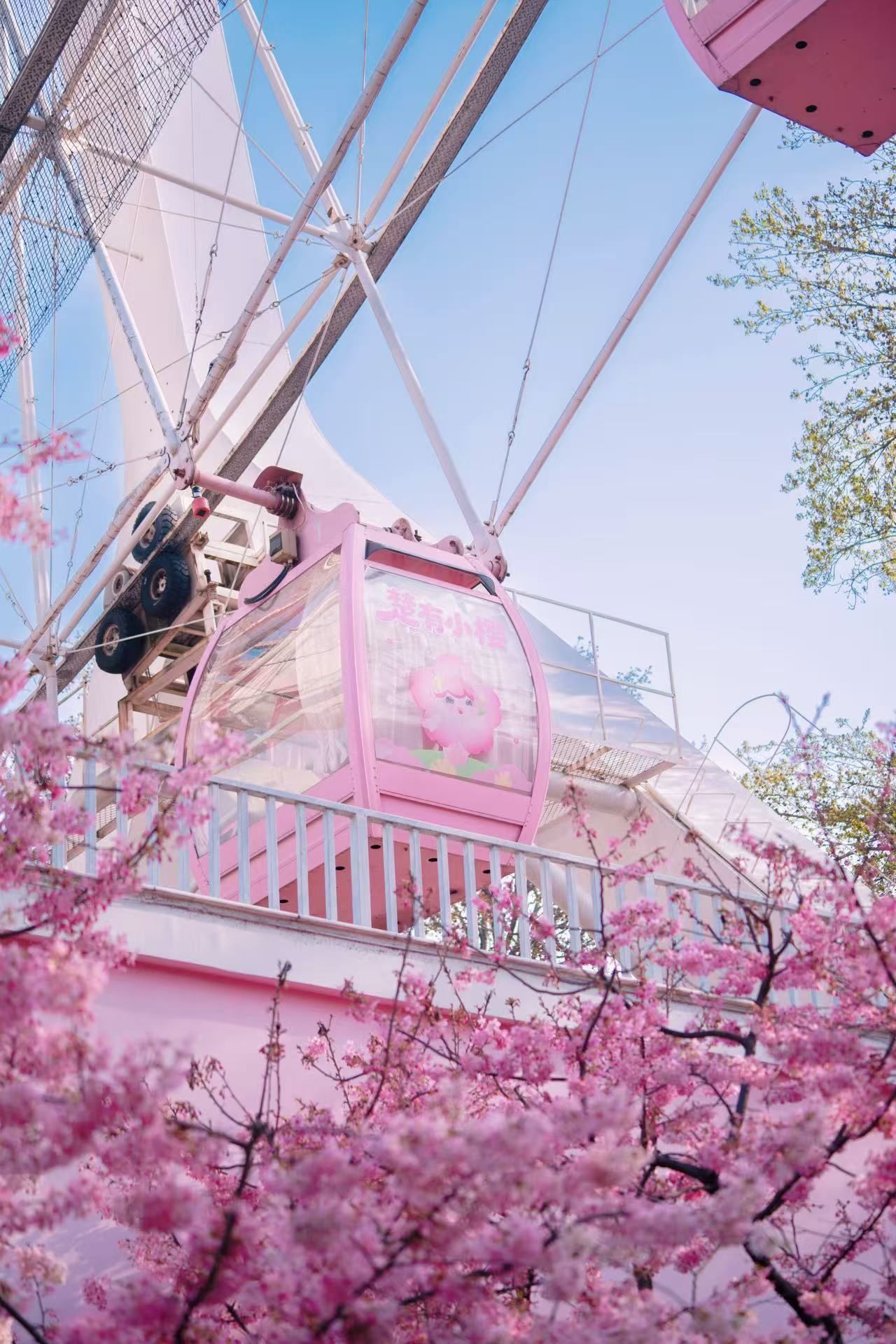 “东湖之眼:摩天轮和樱花同框。景区供图