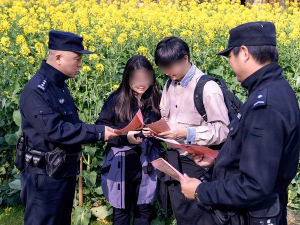 据了解,随着3月赏花季的到来,东湖公安早已启动了旅游高峰勤务,将警务前移至景区一线,民警辅警在做好治安巡逻、服务游客的同时,也因地制宜开展反诈、防盗宣传。