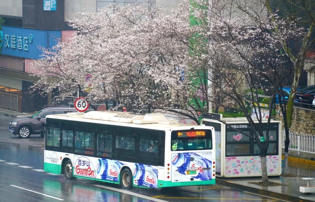 ● 武汉最美樱花车站,雨中樱花初绽
