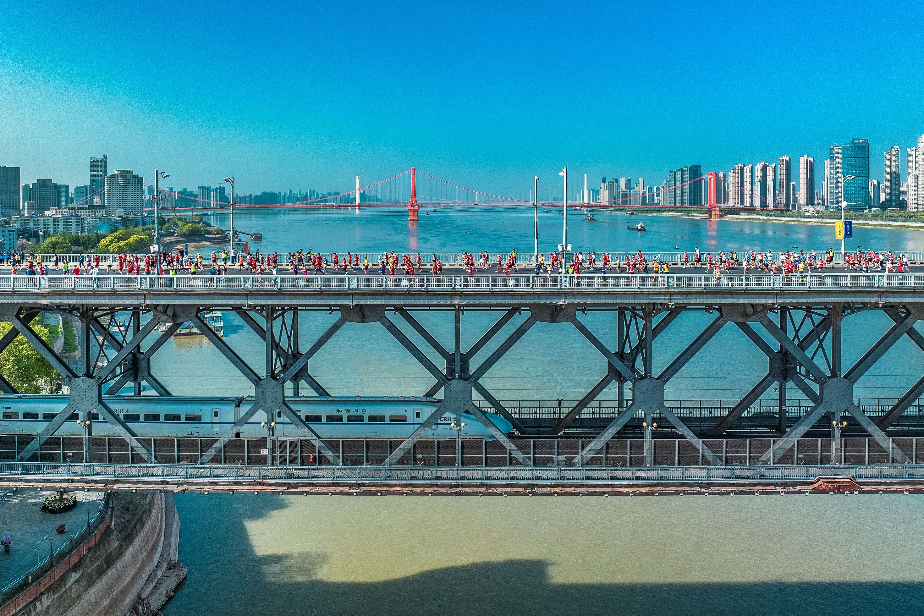 3月14日,武汉首条环城列车启程运行,两次跨越长江,串起武汉三镇。