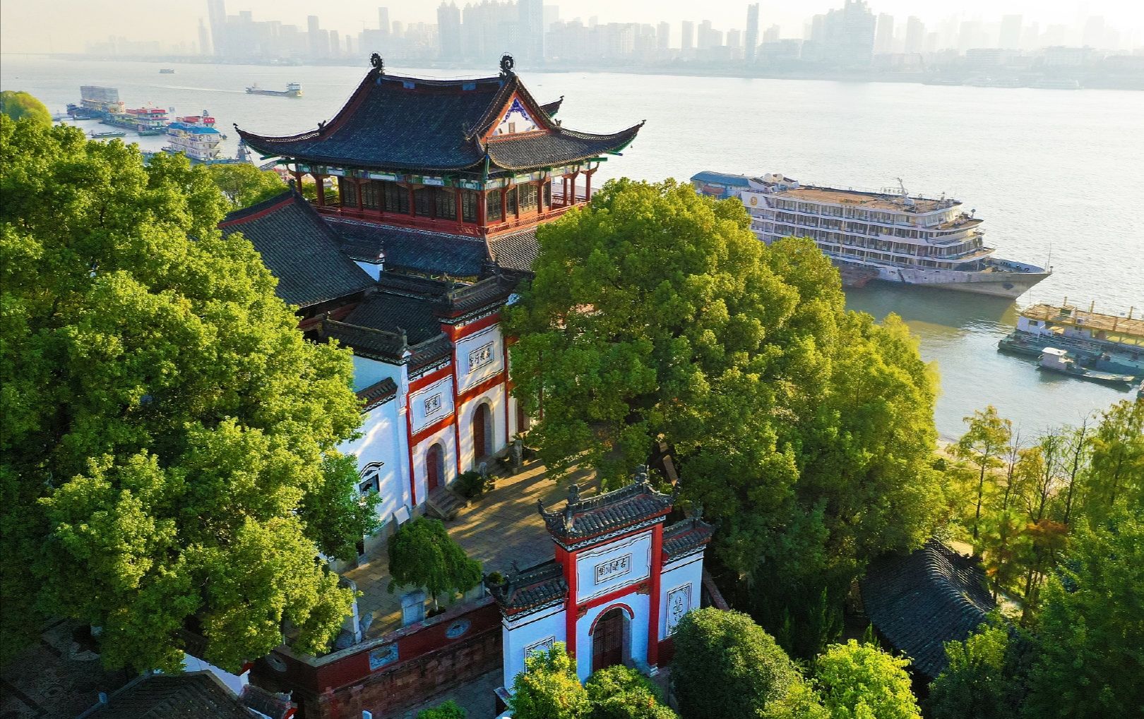 “江汉揽胜”线路虽短,却荟萃了长江两岸的自然风光、文化地标与城市烟火气,巧妙集纳亭、台、楼、阁、殿五种传统建筑形制于一线,生动展现“半城山水半城诗”的城市意象。