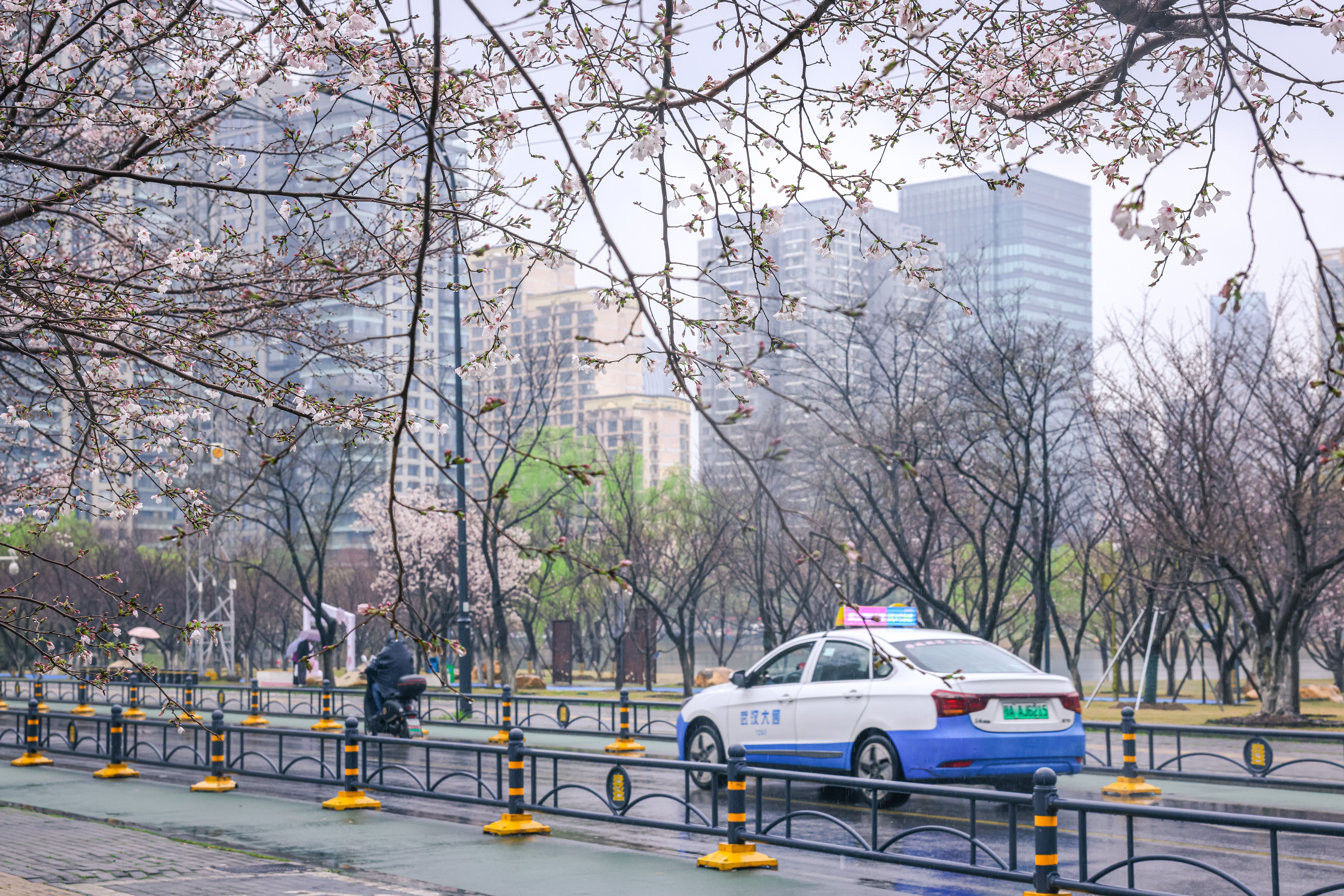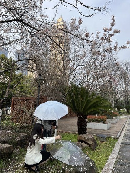 网络上,关于雨樱的讨论也持续升温。有网友在小红书发问:“阴雨天,还能来武汉看樱花吗?”一位网友给出了肯定的回答:“可以。雨中的樱花其实很坚韧,而且雨天独有的氛围感,很容易拍出清透的照片。想象一下,花瓣轻轻落在透明雨伞上的画面,多美。”