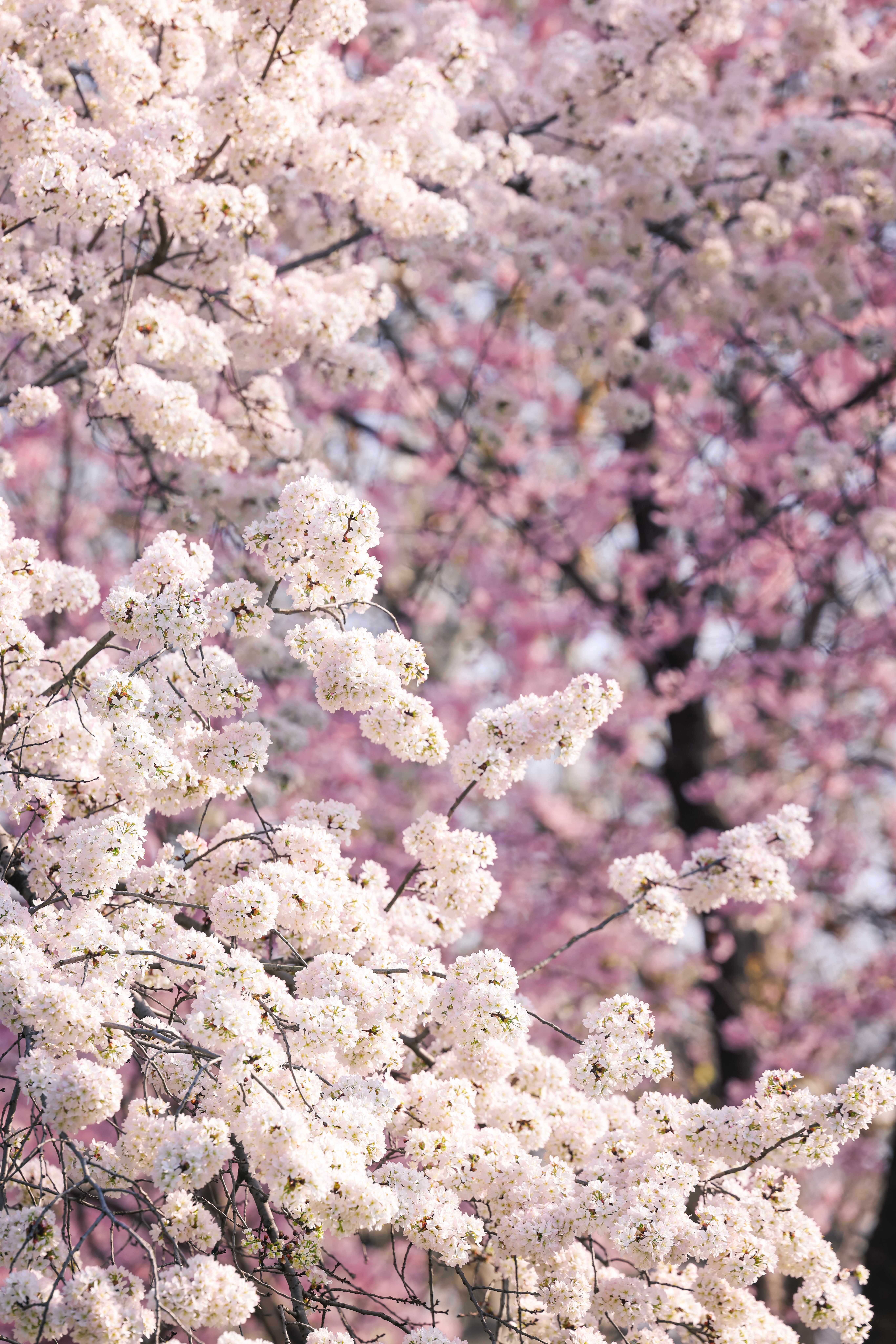 汉口江滩樱花园,双色樱花树开得灿烂。曾熙来摄