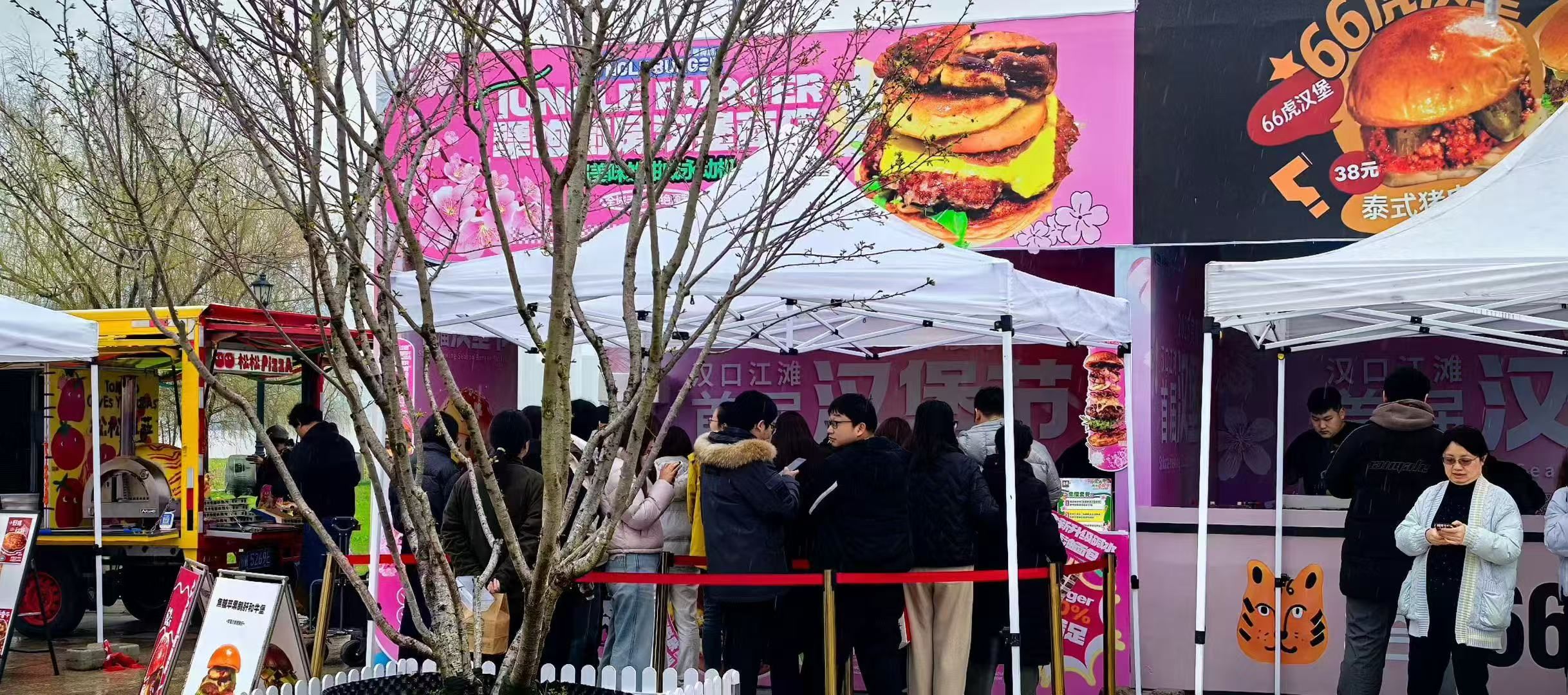 3月17日,汉口江滩,汉堡节一出摊引来游客排队购买。通讯员吴秀芬 摄