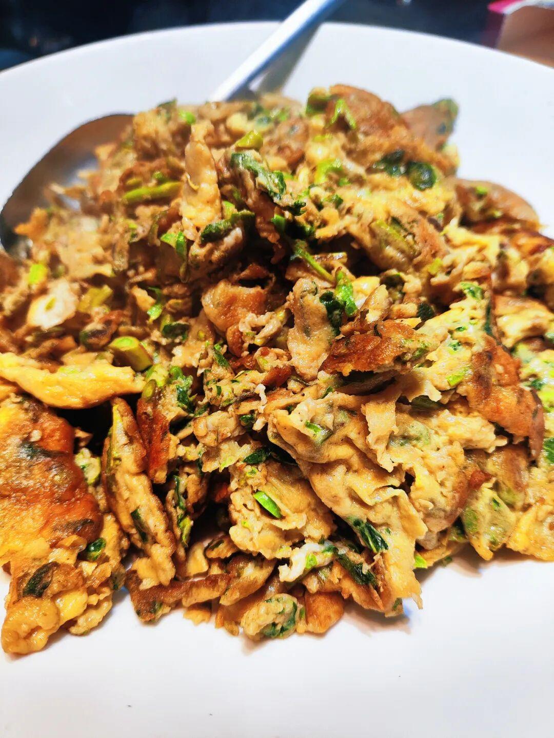 新鲜香椿芽下锅焯烫几秒,切碎后与打散的鹅蛋搅匀。菜籽油烧热,“滋啦”一声倒进锅里,香气瞬间炸开。不过片刻,一盘热气腾腾的香椿炒鹅蛋就上桌了。入口的那一刻,鹅蛋软嫩不柴,香椿脆嫩回甘,鲜香在嘴里慢慢散开,不冲不腻,清清爽爽。一口下去,像是把整个初春的阳光、雨露、微风,全都吃进了心里。