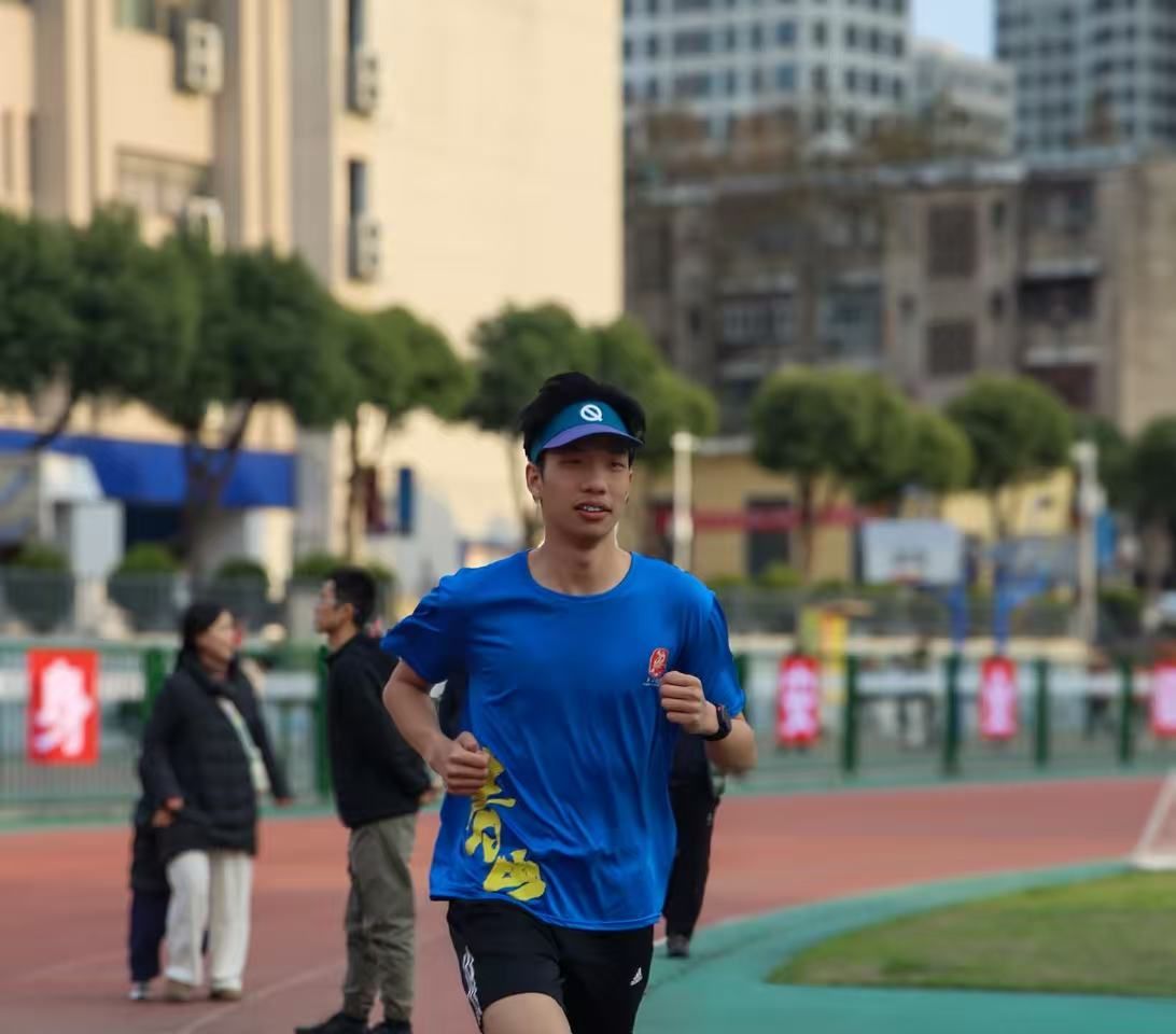 “一公里都跑不下来,就先跑完一公里。”陈奕弛说。每天清晨6点,他沿着江滩开始一天的训练。傍晚放学后,他又会抽出一个小时在学校操场上重复着圈数。“跑步是我高中学业中的解压阀,每一步踏在地面上的声音,都是我与自己对话的方式。”他说。