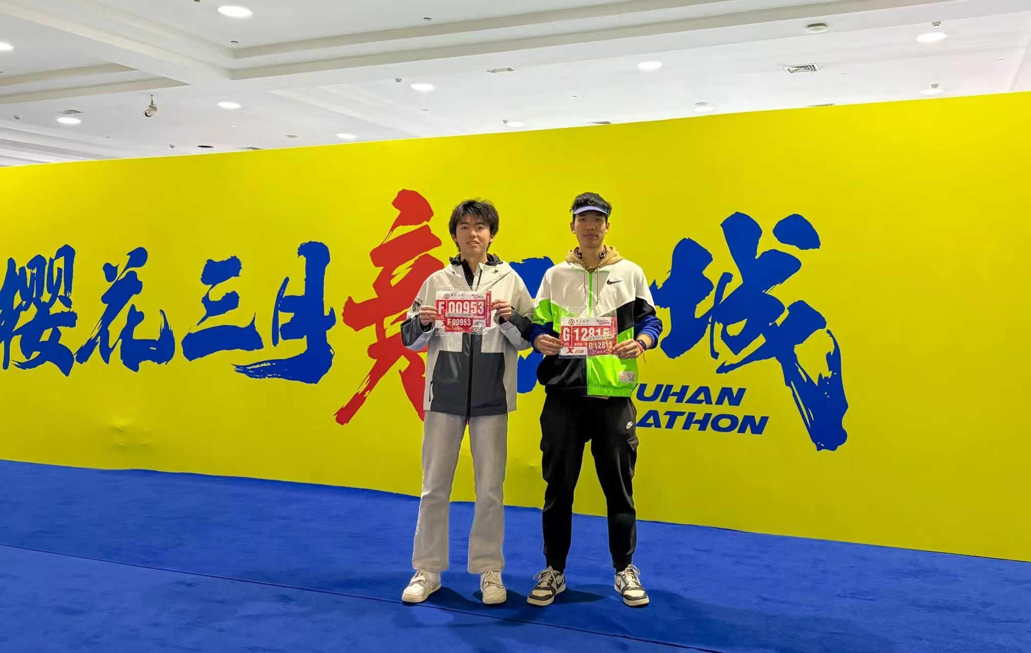 陈奕弛(右)参与过2025年武汉马拉松。