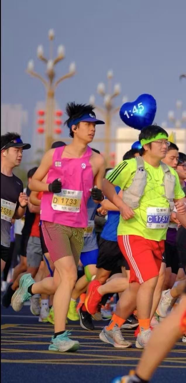 2025年比赛日早晨,陈奕弛提前一个半小时到达起点。三阳路地铁站旁早已人声鼎沸,跑者们穿着各色跑服,做着热身运动。7点30分,发令枪响,人群如开闸的洪流般向前涌动。他跟着人群跑过中山大道,路旁的樱花花瓣如雨落下。两旁的市民挥舞着旗帜,呐喊声此起彼伏。