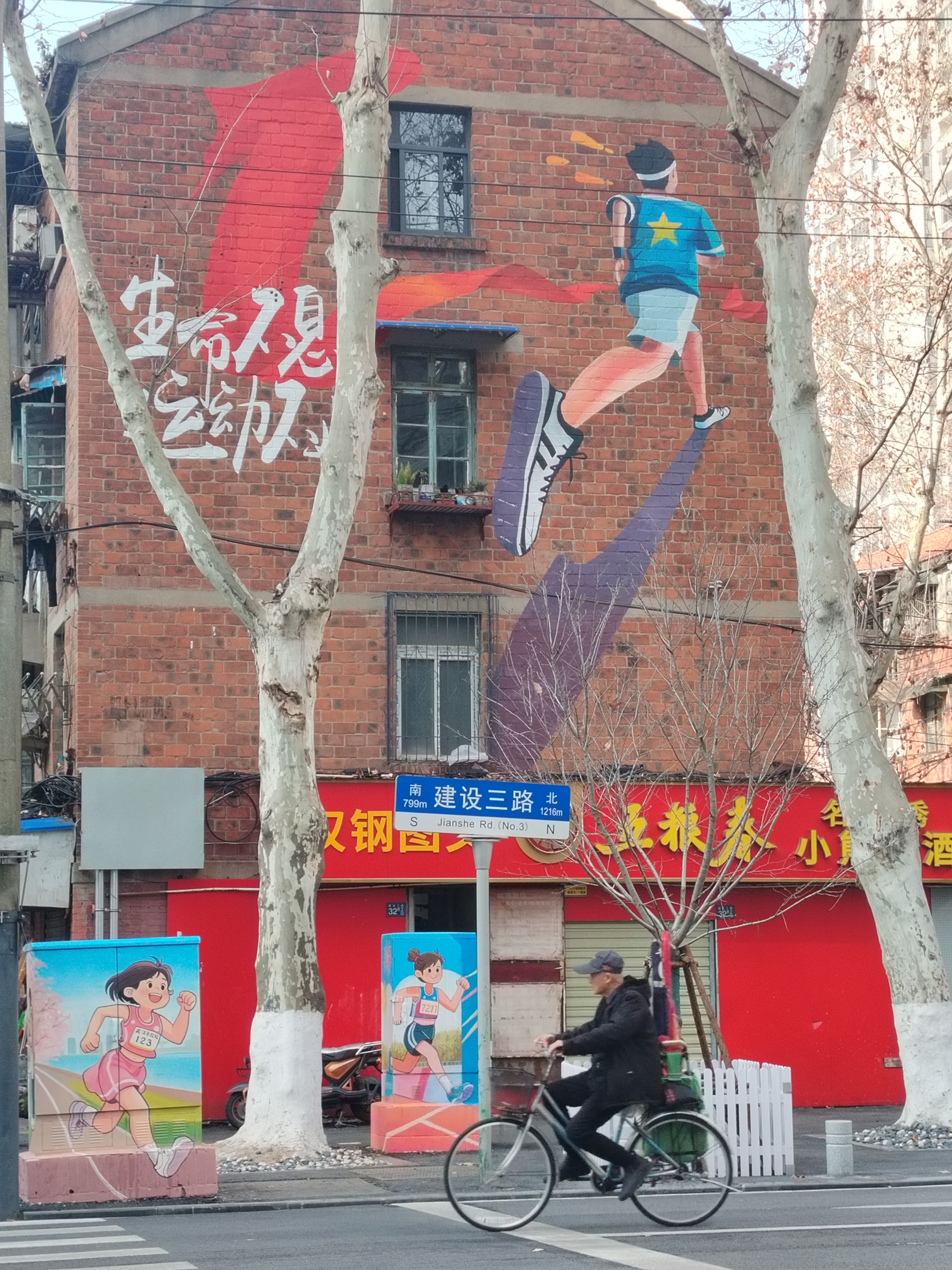 汉马开跑前夕,虹蔚社区已完成墙面彩绘等城市更新工作。