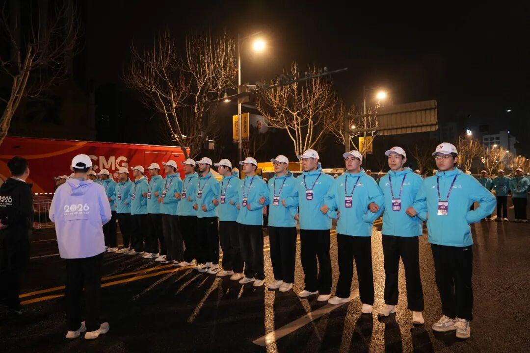3月22日5时许,志愿者在起点做开赛前的准备。记者彭年 摄
