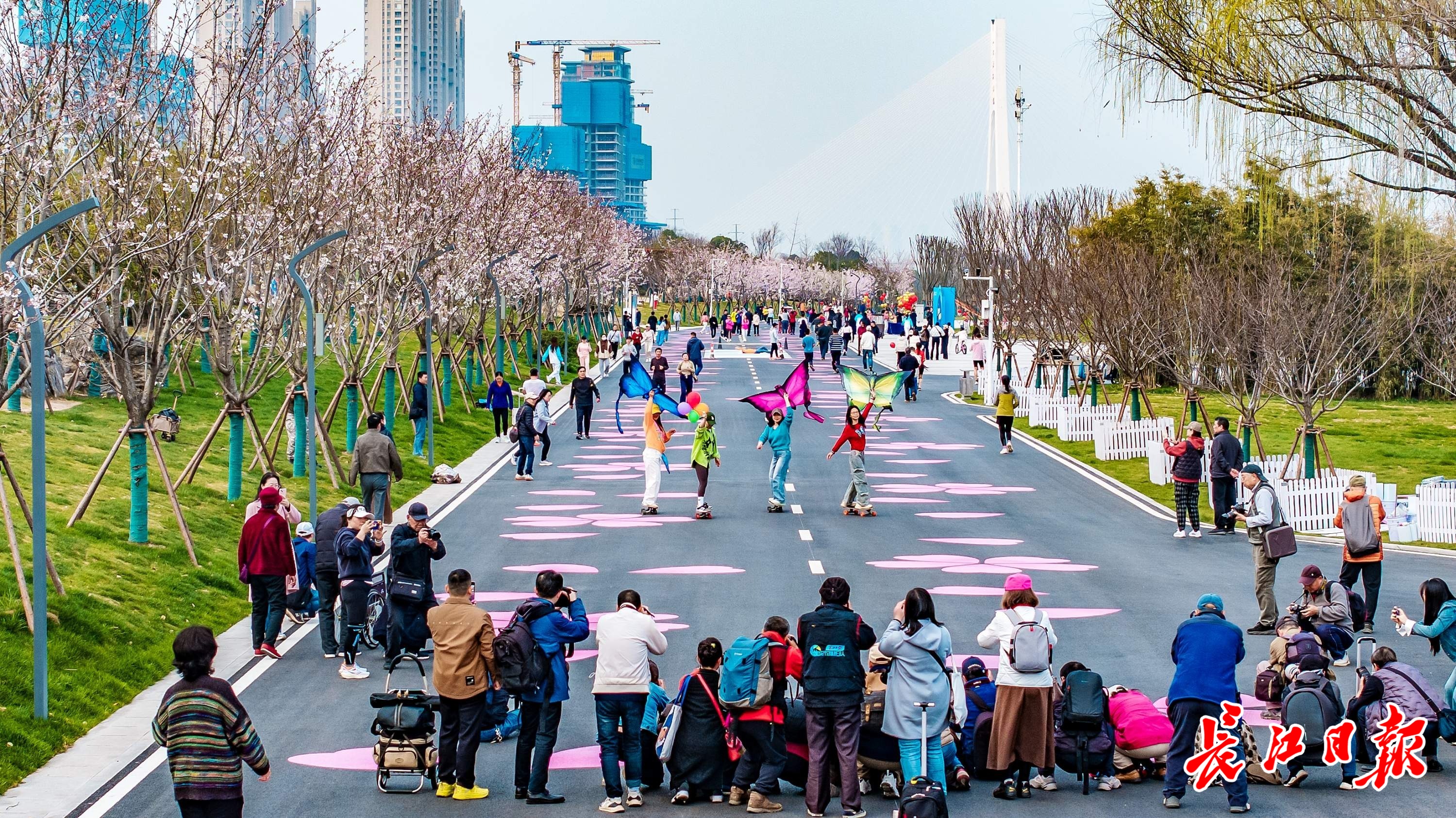 汉马终点设在青山江滩,独特的“樱花赛道”成为跑友和市民争相打卡的热门点位。 记者陈亮 摄